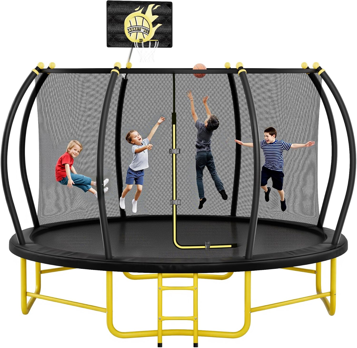 - [Safety First, Parents at Ease]We know that parents are concerned about the safety of their children, so this trampoline uses high-quality materials and reinforced structural design to ensure maximum safety. Fabric backboards are soft and durable, reducing the risk of accidental injury while playing.