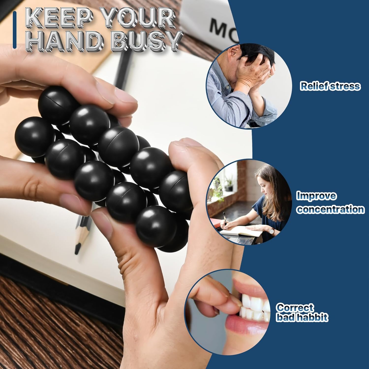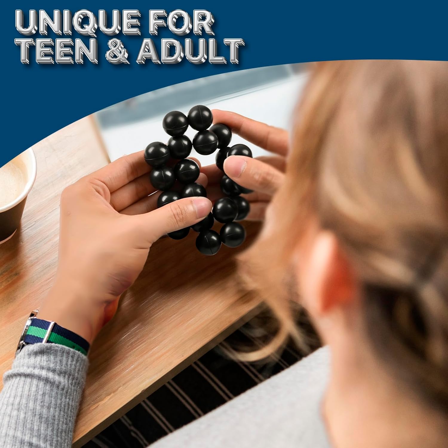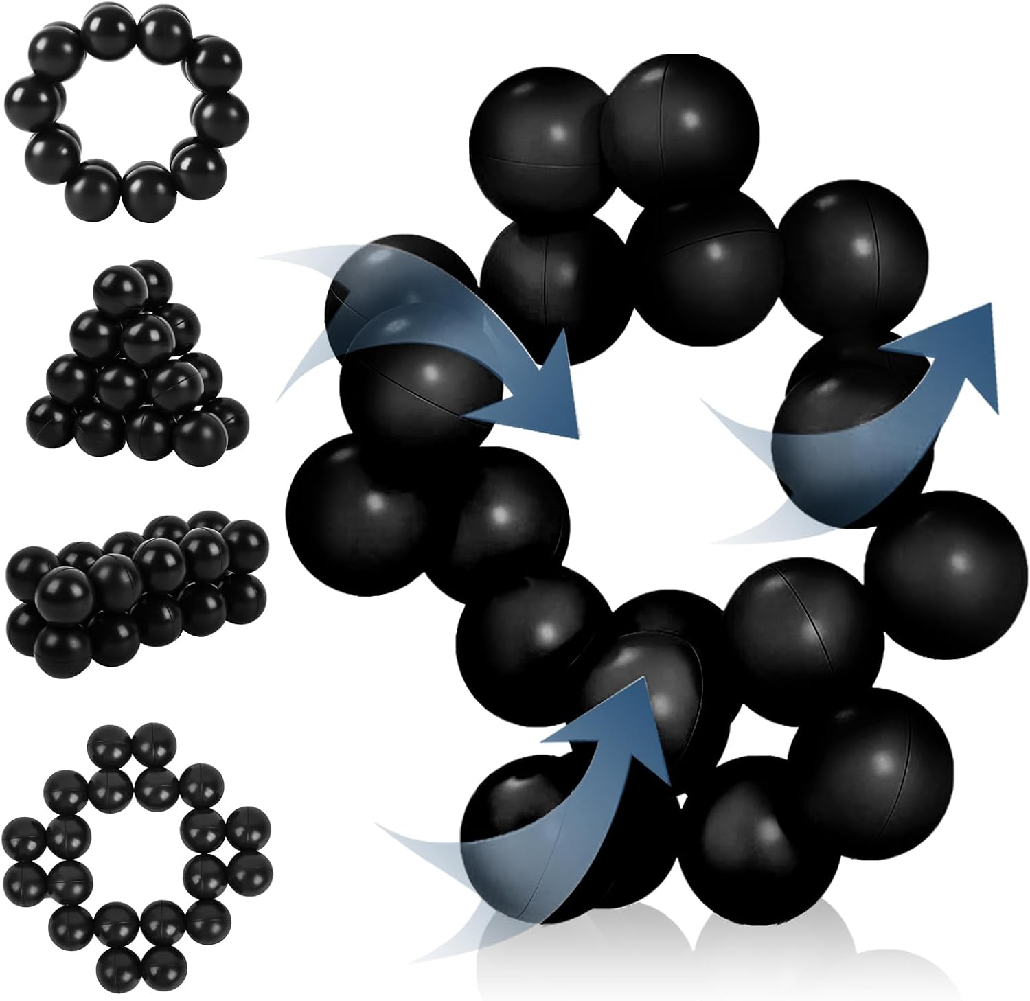 - [Adult decompression toy] The Dr.Kbder Sensory Ball is a novel office toy. The sensory sphere consists of 20 black balls, each connected to two balls. This special structure enables the sensory ball to obtain different morphological structures through rotation, which can relieve work pressure.