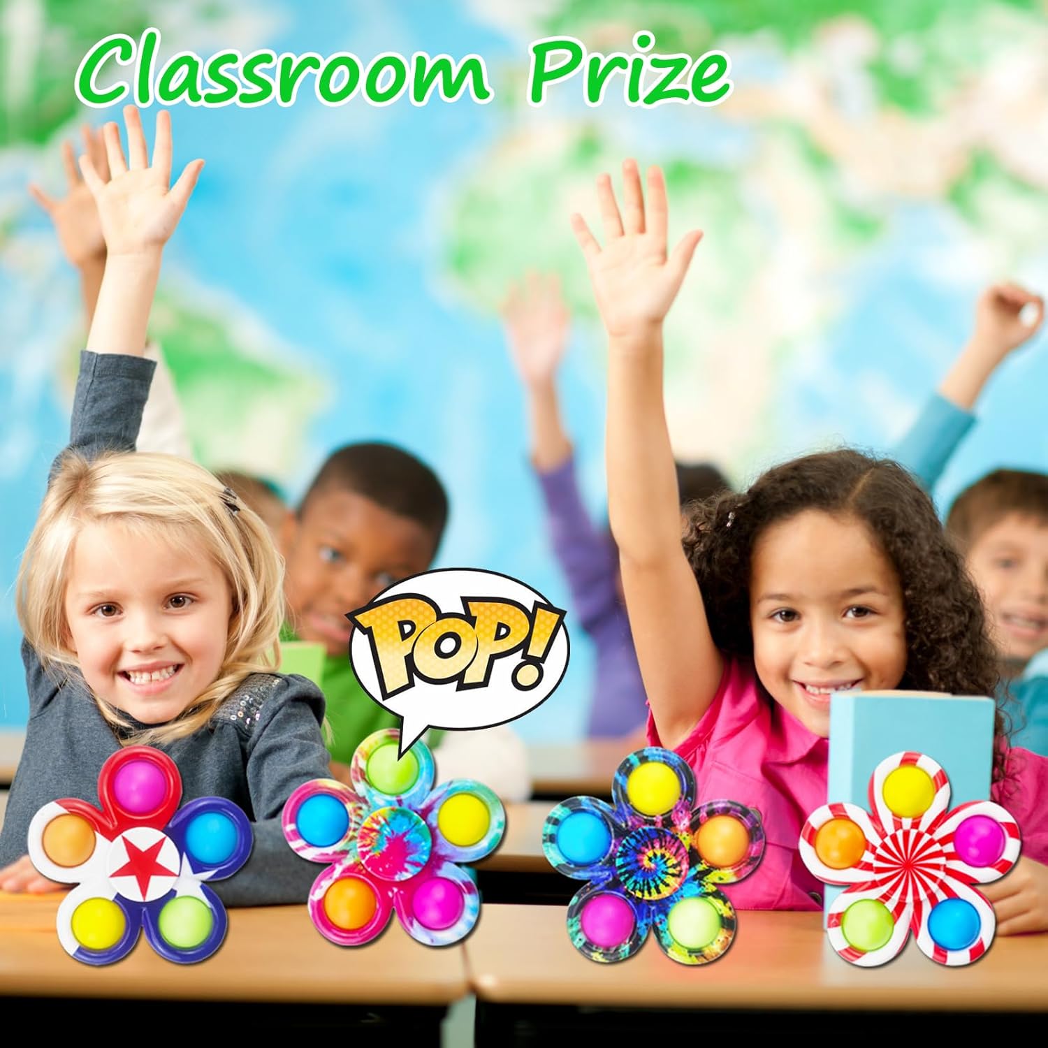- 【2 in 1 Unique Design Fidget Spinner】It includes 30pack 2 in 1 pop fidget toys with 10 different kinds of vivid color patterns. It is not only a pop bubble toy, but also a fidget spinner. Pressing the bubble on any side will make a pleasant stress reliving "POP" sound.