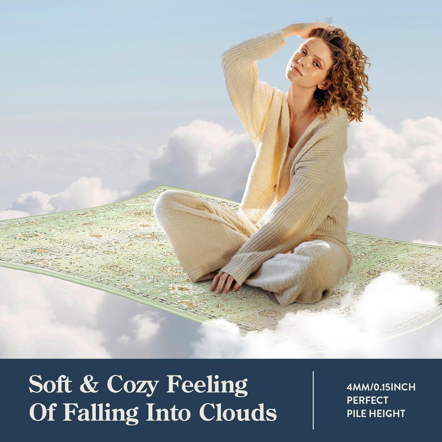 Lahome 5x7 Sage Green Rugs for Bedroom, Soft Boho Rug for Living Room, Machine Washable Floral Carpet Non Slip for Nursery Playroom Indoor