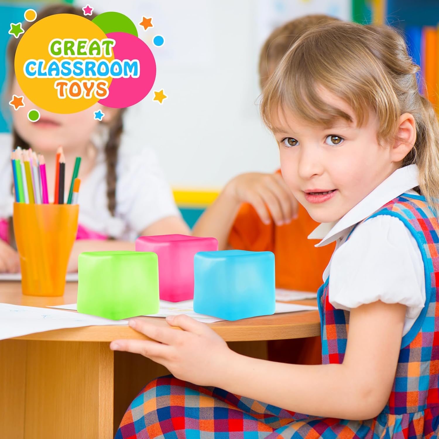 - Slow-Rising Squishy Toys: These fidget cubes will slowly restore its original ice cube shape after squeezing,to made this sensory fidget toy ,so that you can have more fun while squeezing these ice cube squishy stress toys.These brightly colored soft squares offer a soothing tactile experience, perfect for individuals seeking stress relief, including those with ADD/ADHD, OCD, autism, or high anxiety.