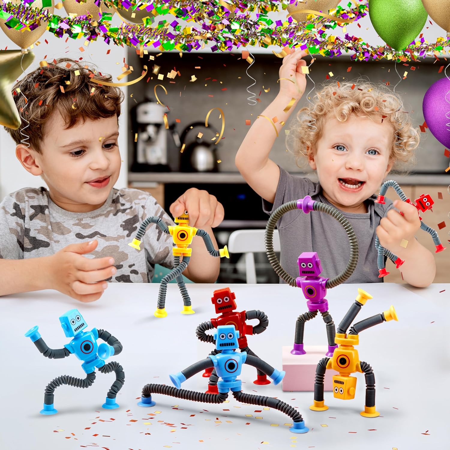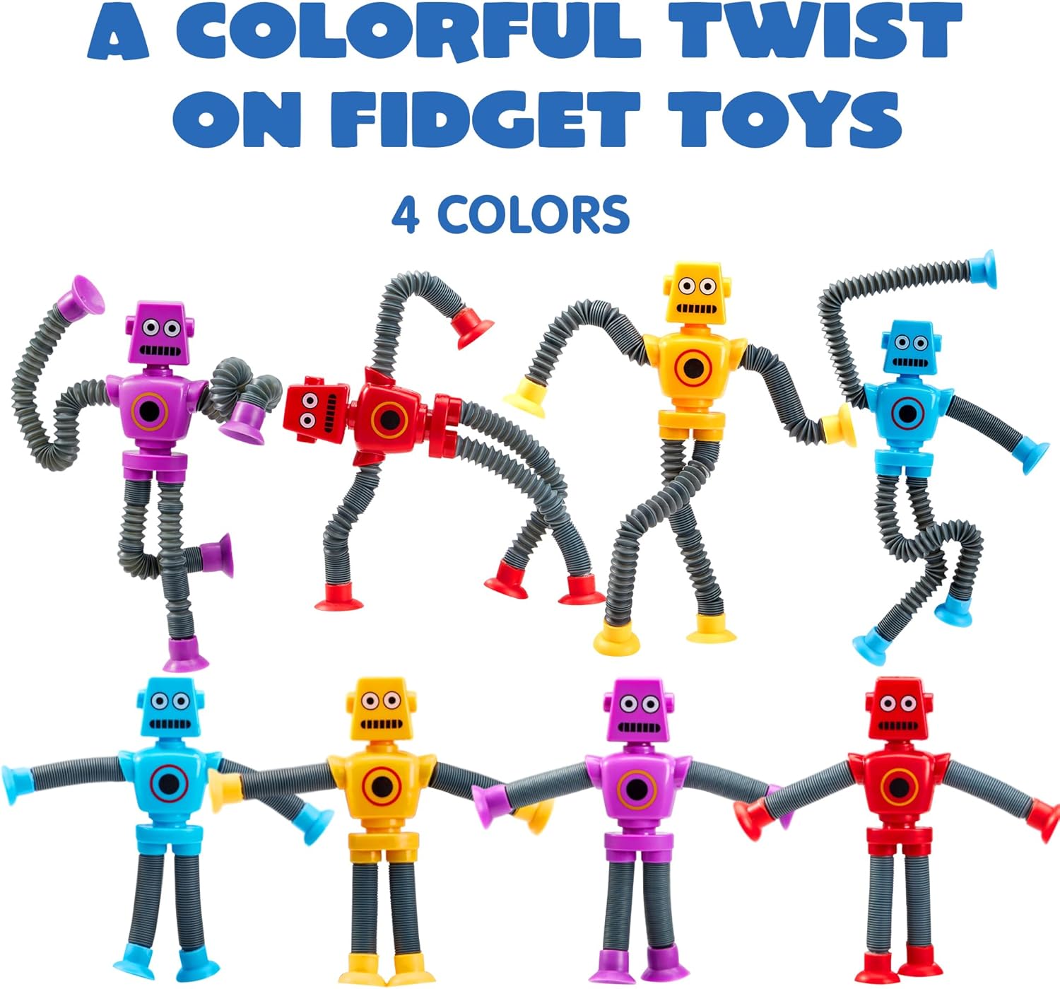 JOYIN Pop Tubes Robot Toys for Kids, 4 Pcs Sensory Toys for Year Old Ages 3 4 5 6 7 8 9 10 Fidget Toys Birthday Gift for Toddler Boys Girls Adults Travel Toys Stocking Stuffers Party Favors