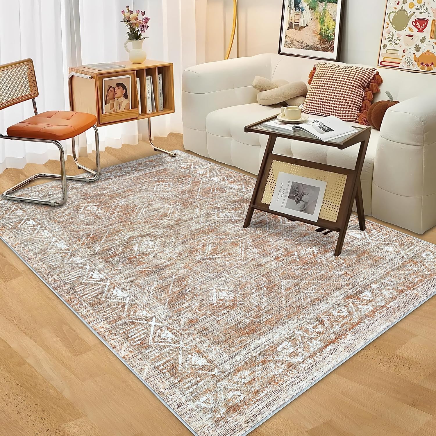 - Machine Washable Rug: Our 4x6 washable rug have stain and splash-resistant properties. Use a broom or vacuum cleaner to Clean up or hair for daily care. The rug can be washed directly in the washing machine in cold water, making cleaning a breeze.(Please remember not to use bleach!)