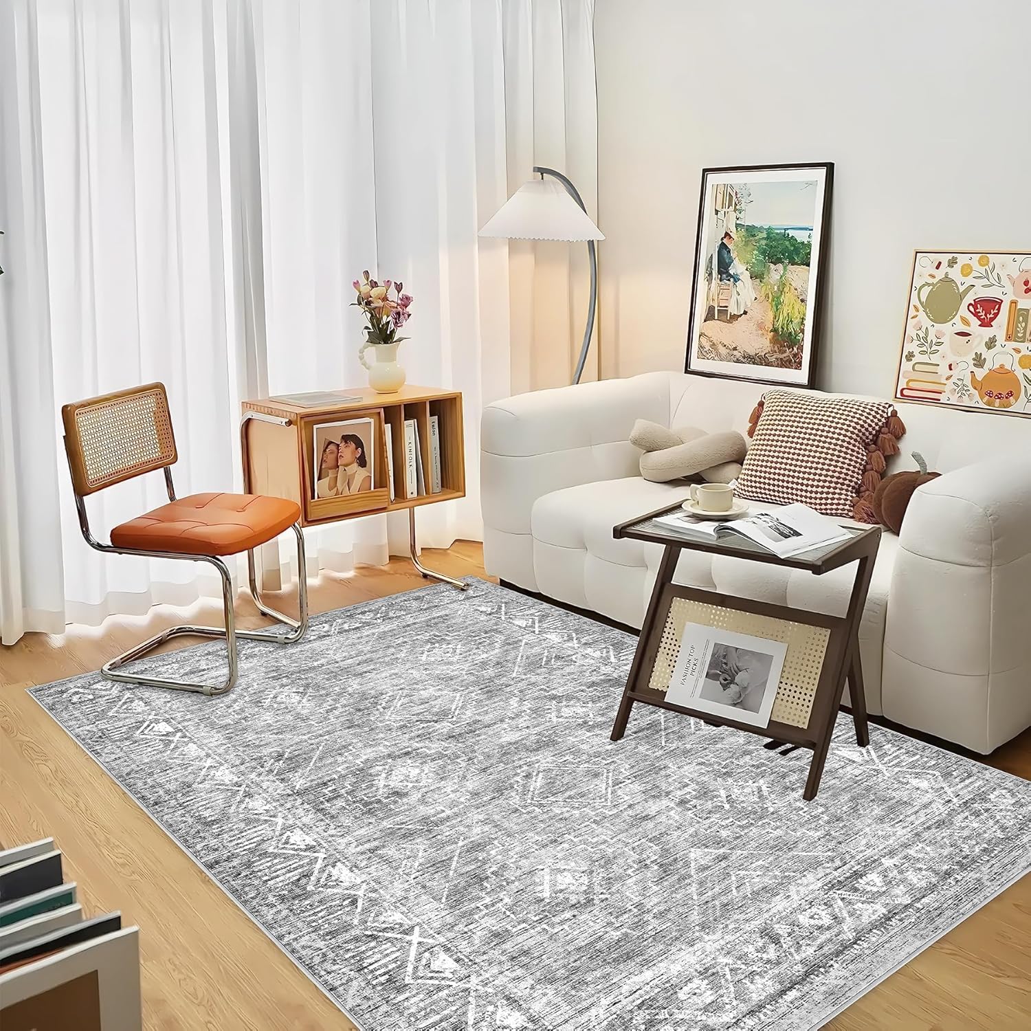 Vintage Moroccan Trellis Area Rug - 4x6 Machine Washable Boho Geometric Farmhouse Rugs Neutral Stain Resistant Non Slip Indoor Carpet for Bedroom Dining Room Nursery Home Office (4 x 6, Grey)