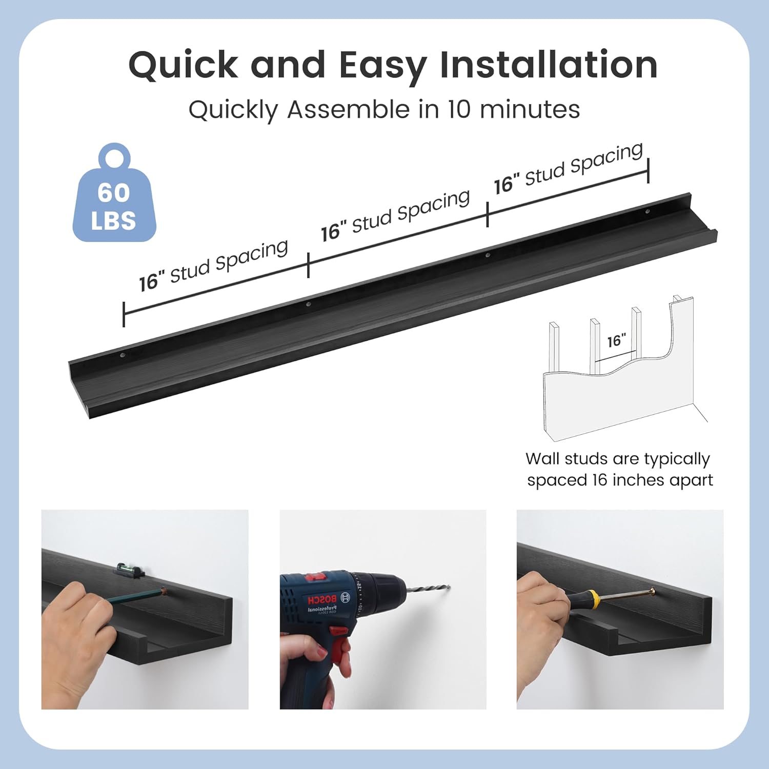 - Easy to Install: You will get a level, screws for the wall, drywall anchors, a detailed installation guide, and two beautiful hand-crafted solid pine wood shelves. With the level, you can make sure your picture ledge shelves are well aligned. Just follow the simple instruction to install the hanging shelves for wall decor within 10 minutes. We add additional screw and anchor to the hardware bag just in case. If you have any questions about our products, please feel free to contact us
