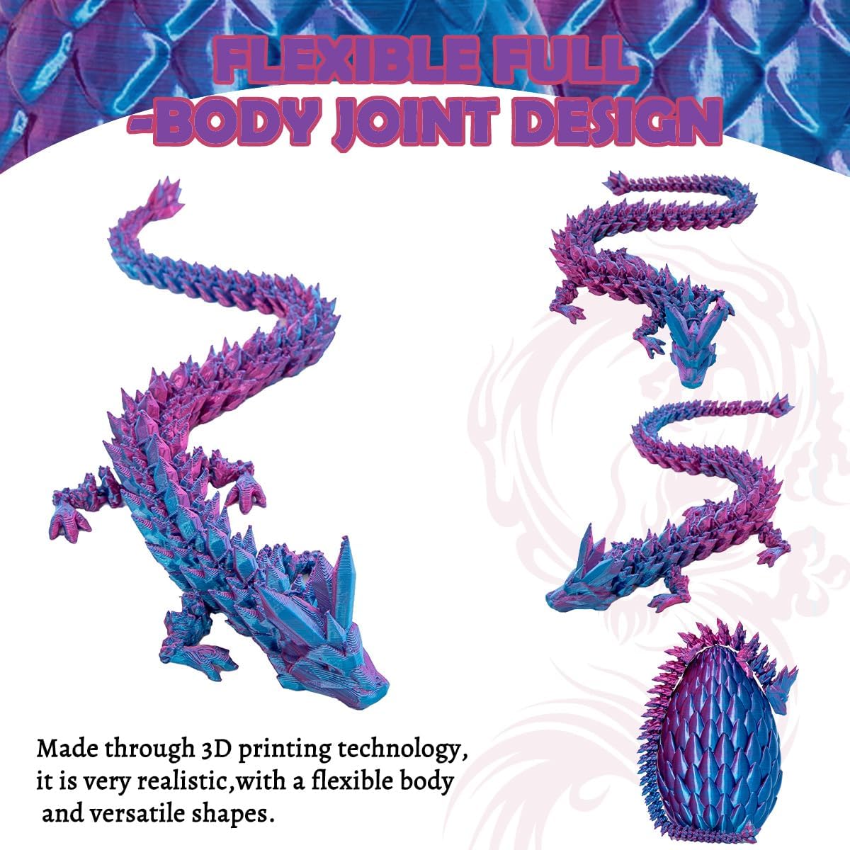 Dragon Eggs with Dragon Inside, 12In Laser Purple 3D Printed Dragon Egg Fidget Toy, Executive Desk Articulated Dragon Toy, Home Office Decor