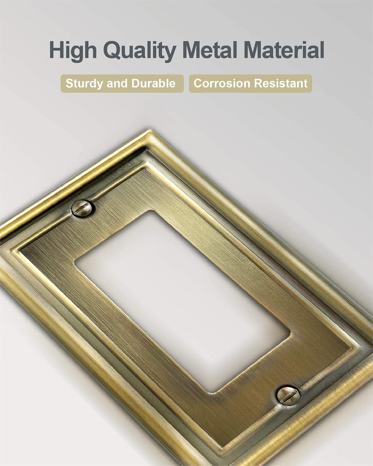 2-Pack Antique Brass Decorator Wall Plate, Electrical Outlet Cover for Dimmer Switch, GFCI Outlet and Receptacal, Metal Light Switch Cover, 3.15''*4.88'', Midsize