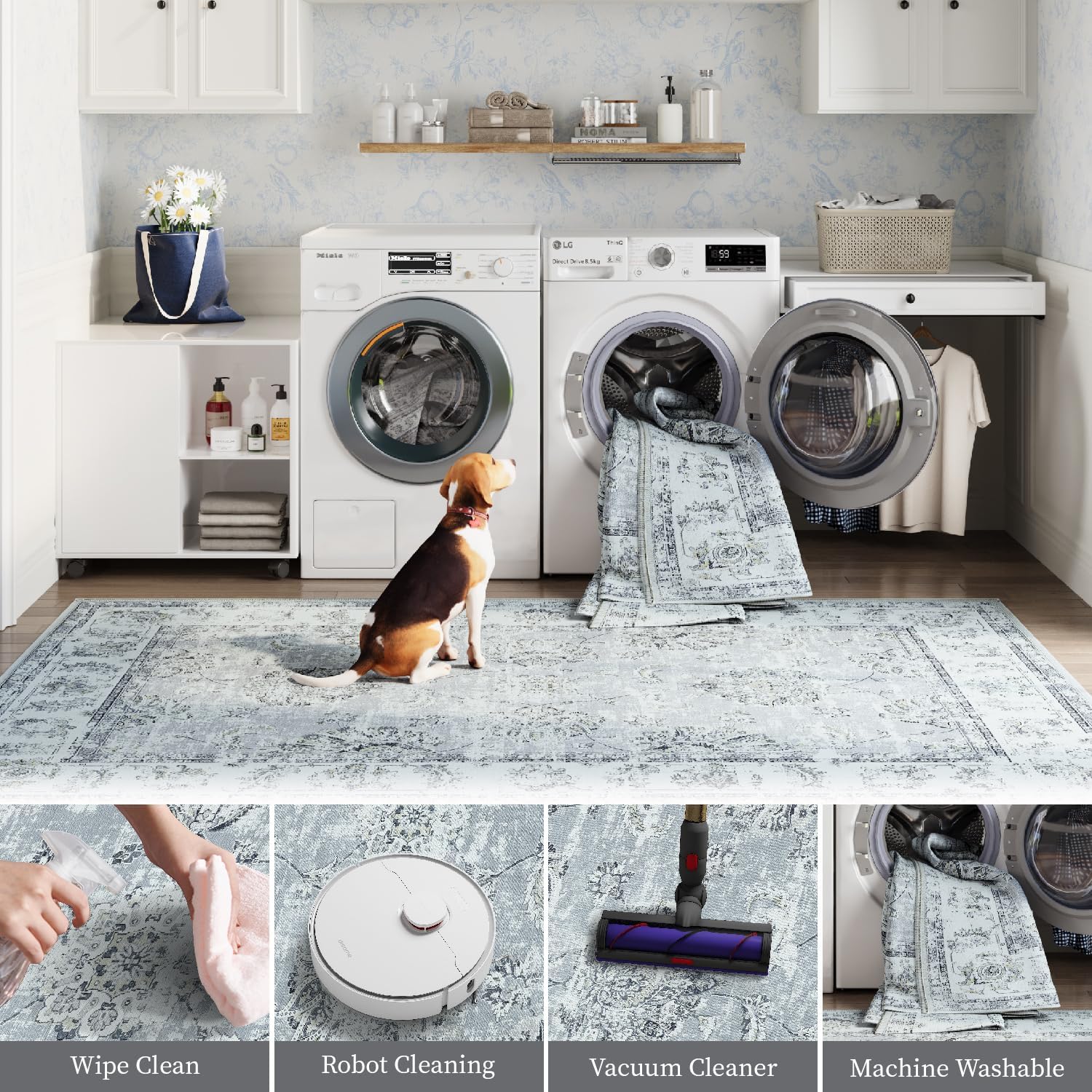 jinchan Runner Rug 2x5 Washable Hallway Runner- Vintage Floral Non Slip Low-Pile Soft Thin Kitchen Rug Distressed Carpet for Farmhouse Bedroom Entryway Laundry Room(2x5ft,Grey)