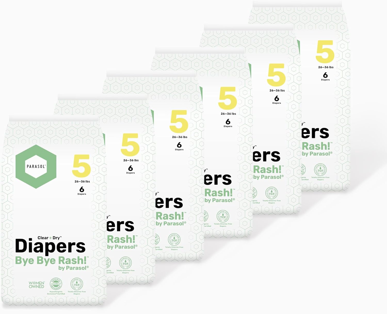 Parasol Clear+Dry Disposable Diapers, RashShield Protection, Leakproof Design, Hypoallergenic Diaper Set | Size 5 (26 lbs.) 36 Count
