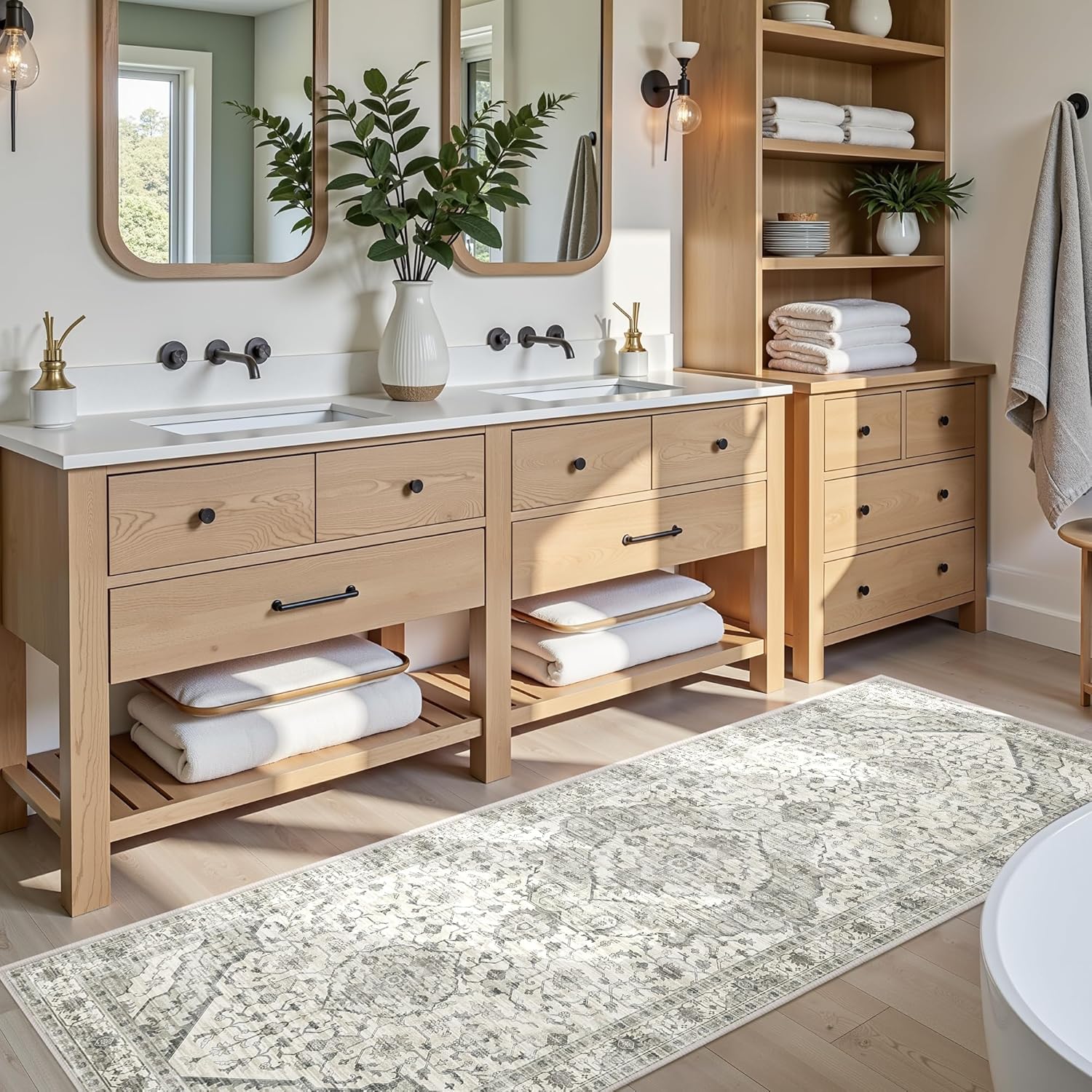 - [Washable & Easy to Clean]: Our long rugs are machine washable and easy to maintain. Quickly air-dry due to the thin pile design. Use a vacuum cleaner, broom, or wipe several times per week or deep clean regularly on the situation.Product note: When you receive a new throw rug with a crease, you could try rolling it up the opposite way for two full days, then laying it flat on a clean floor.