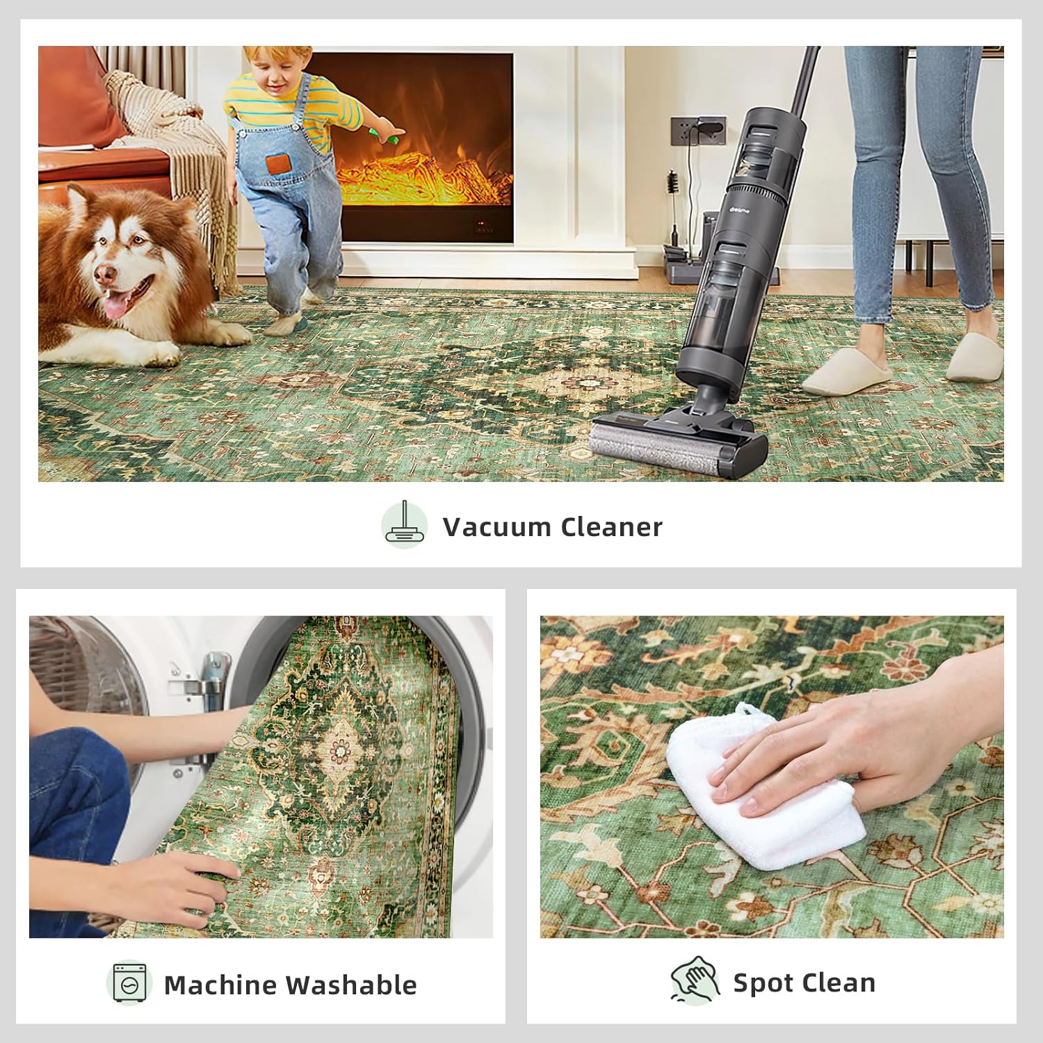 Green Area Rug Entryway Rugs for Bedroom Bathroom Kitchen - 2x3 Small Soft Rugs Low Pile Keep Off Rug Carpet Washable Rug Oriental Indoor Boho Area Rug Cute 2x3ft