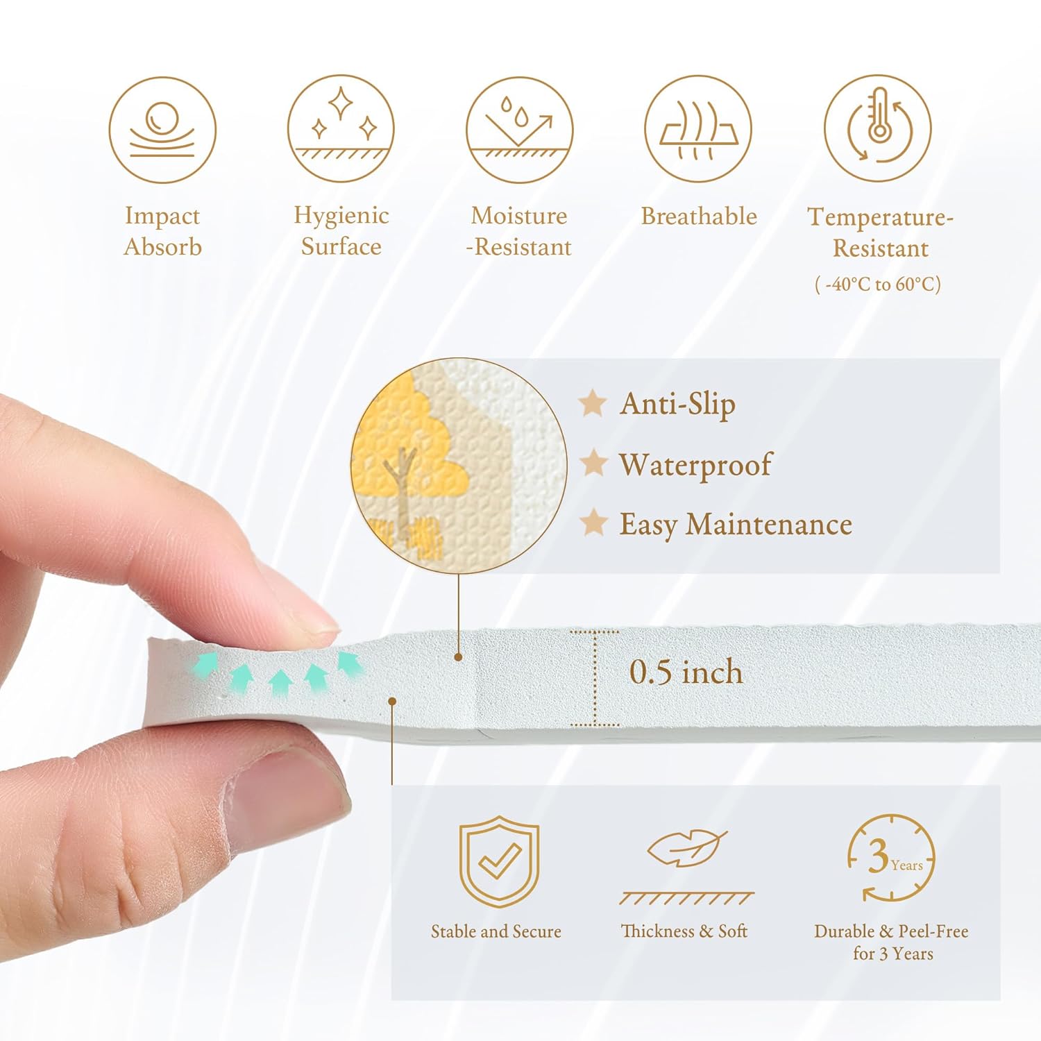 - 【SAFE MATERIALS】Made from durable, shock-absorbing, odorless, and non-toxic EVA foam, our mats ensure safety and comfort. Using a unique printing method, it effectively addresses issues like sun fading and peeling that other brands often encounter, prevents small pieces from breaking off and being accidentally swallowed by babies, and enhances overall durability. With zero-benzene technology, it eliminates toxic odors found in many commercial products, ensuring non-toxic and safe floor mats.