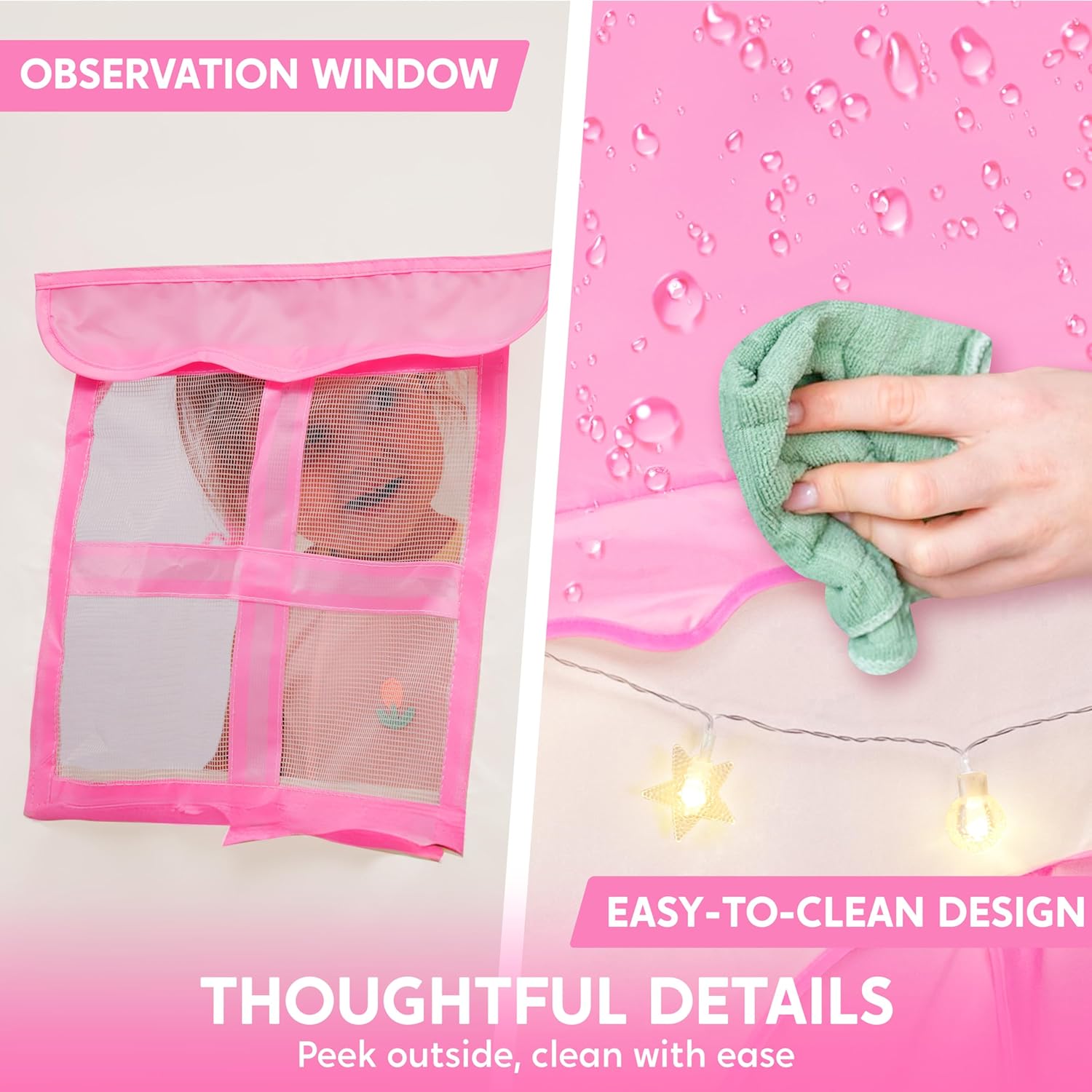 JOYIN Pink Princess Tent for Girls with LED Star Lights-Indoor & Outdoor Large Playhouse Kids Castle Play Tent for Children Indoor and Outdoor Games