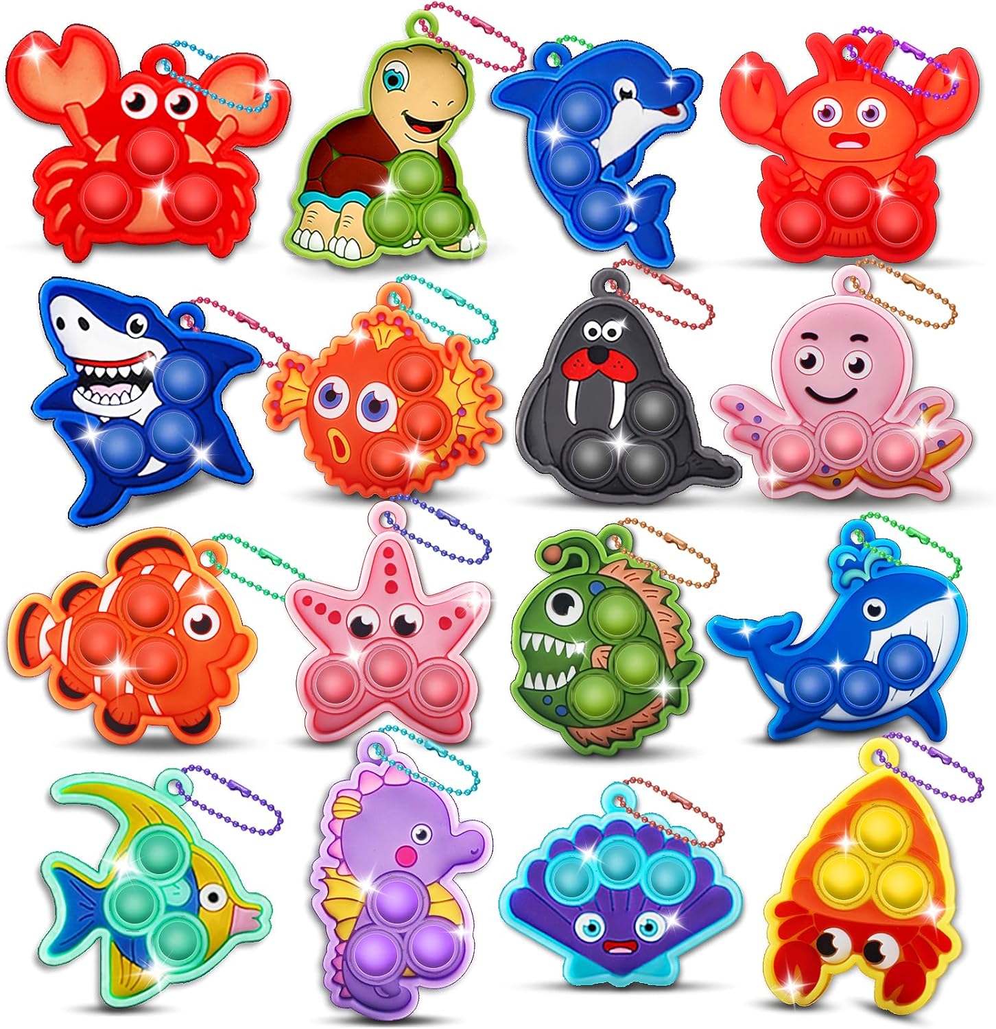 Kiss Monkey Party Favors for Kids 16 PCS Sea Animal Mini Pop Keychain,Under The Sea Party Favors,Birthday Gifts,Goodie Bag Stuffers,Carnival Prizes,Fidgets Classroom Prizes