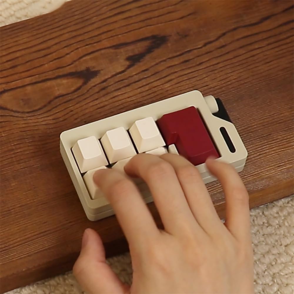 - LATEST FRIDGET - This fridget consists of 7 keys, including 6 white keycaps and a large red enter key. The blue switches are chosen for their strong feel and crisp sound. The large enter key has a crisper sound, giving you a stronger sense of decompression.
