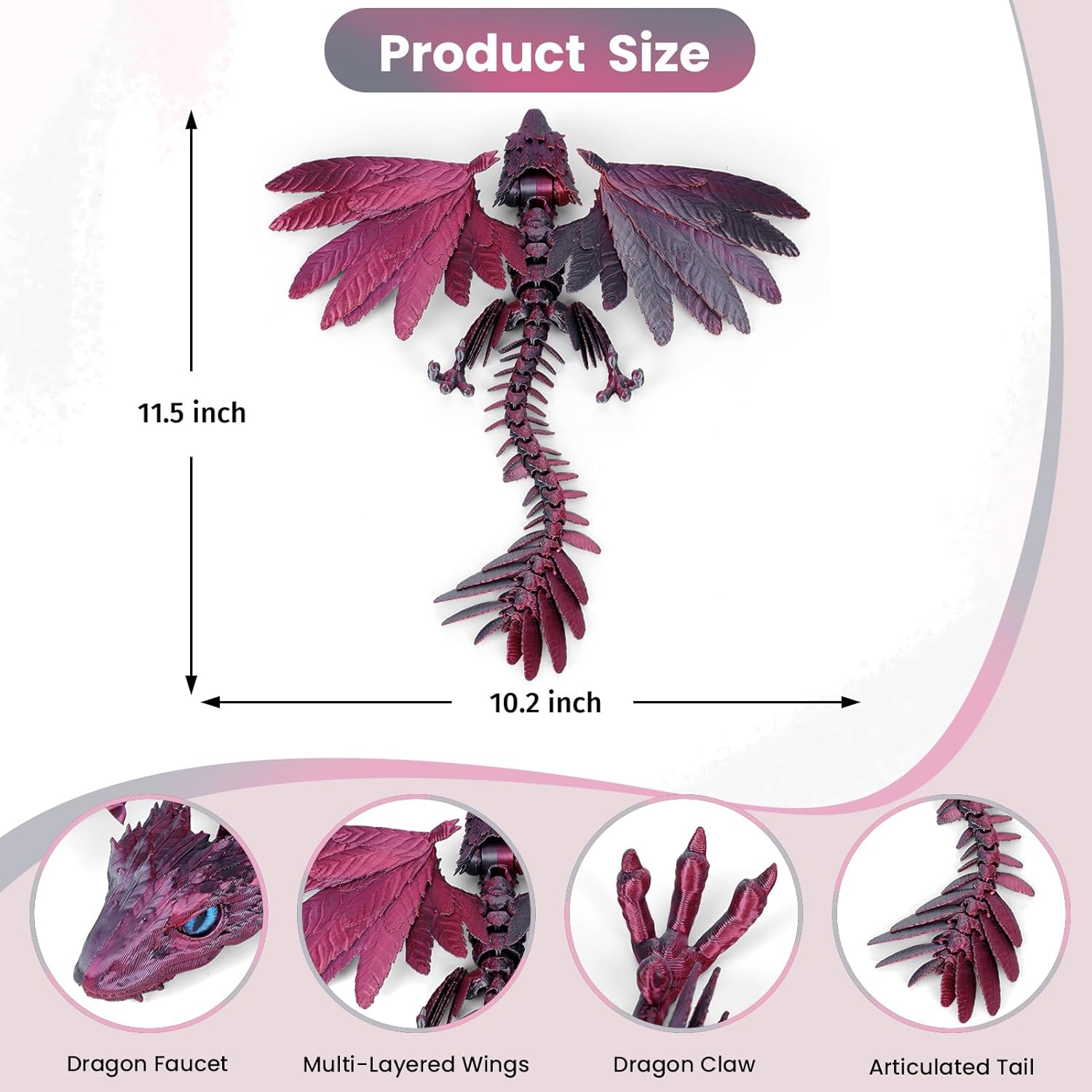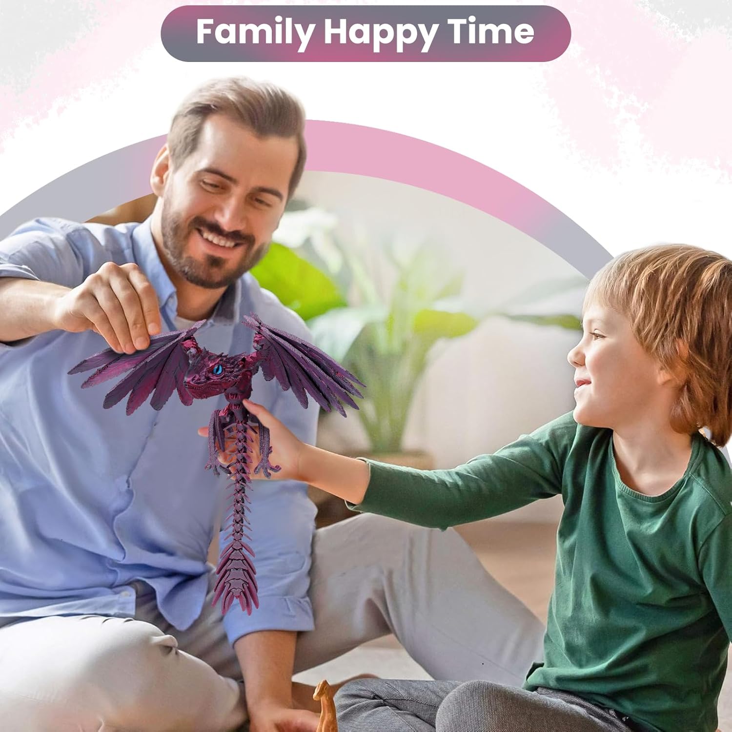 3D Printed Dragon with Wings, Feathered Wyvern Dragon,Full Articulated Crystal Dragon Fidget,Realistic Large Pet Dragon, Flexible Shoulder Dragon Stuff, 3D Printed Animals Toy.