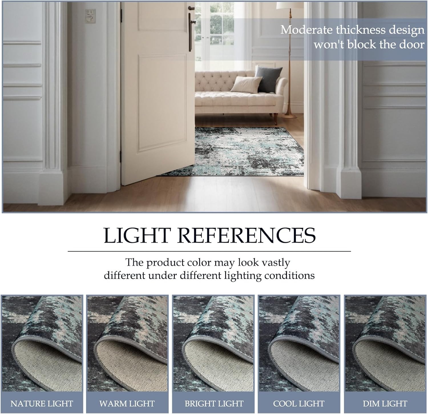 - Thin Design & Folding Packaging: this rugs with moderate thickness not only decor your home, soft on touch but also can be easily placed behind doors and under furniture. The sweeping robot can move around to clean the area rug. The thin design also makes it convenient for you to put the rugs into the washing machine for cleaning and easy to store.