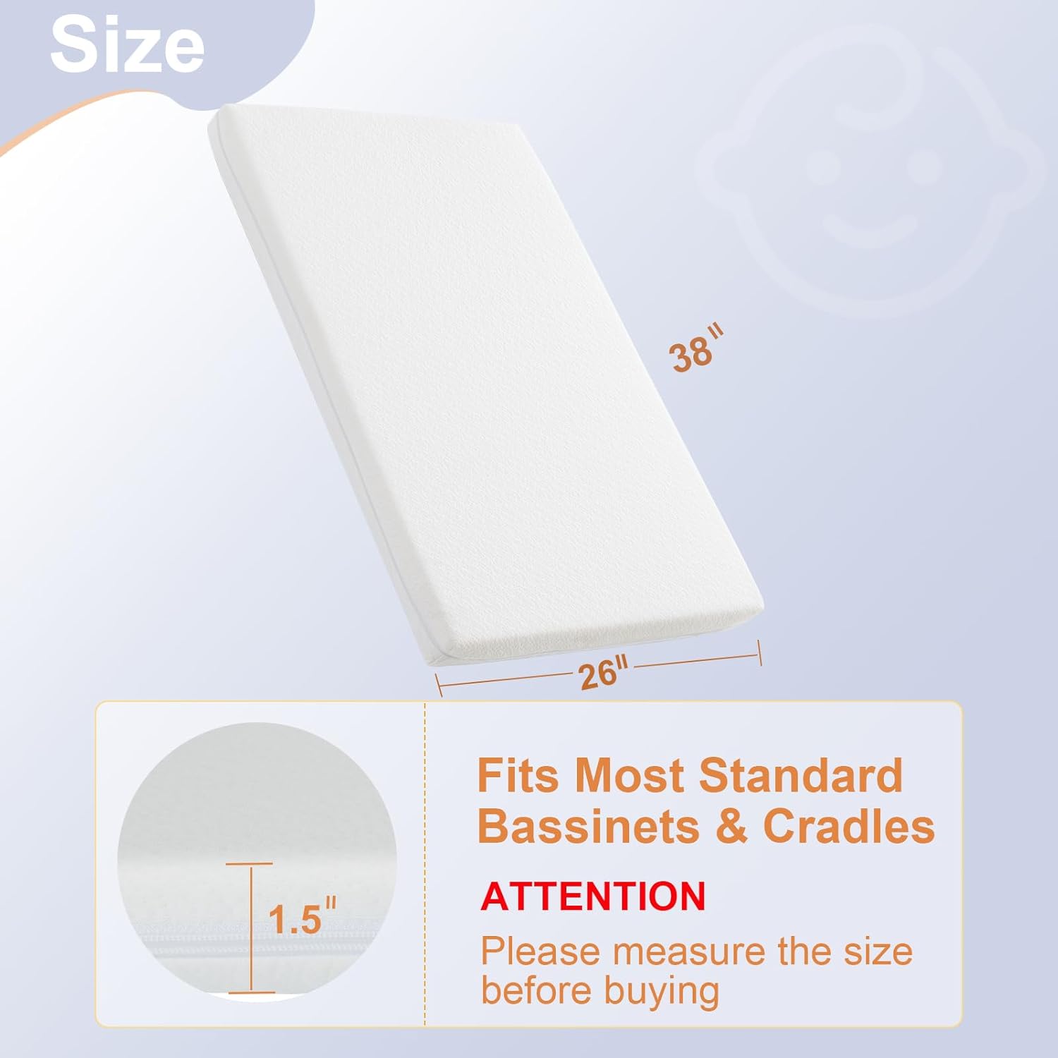 - ăSuitable forăThe size of this pack and play mattress is 38x26x1.5 inch, it fits for most pack n play, playpen playard, mini cribs, or toddler bed. Please measure your mattress size carefully before purchasing.