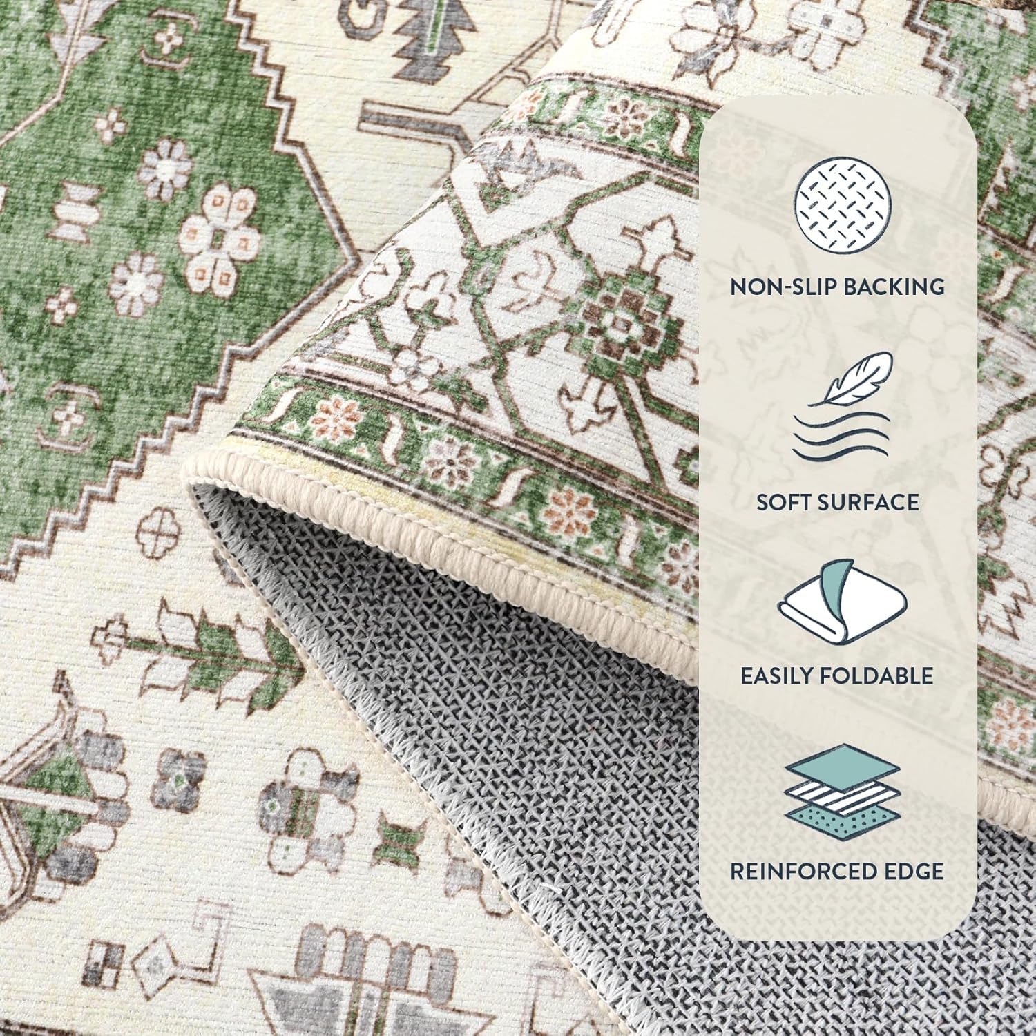 Lahome Boho Green Machine Washable Living Room Rugs - 3x5 Area Rugs for Bedroom Non-Slip Ultra-Thin Entryway Rug, Vintage Print Throw Indoor Carpet Rug for Office Kitchen (Green, 3'x5')