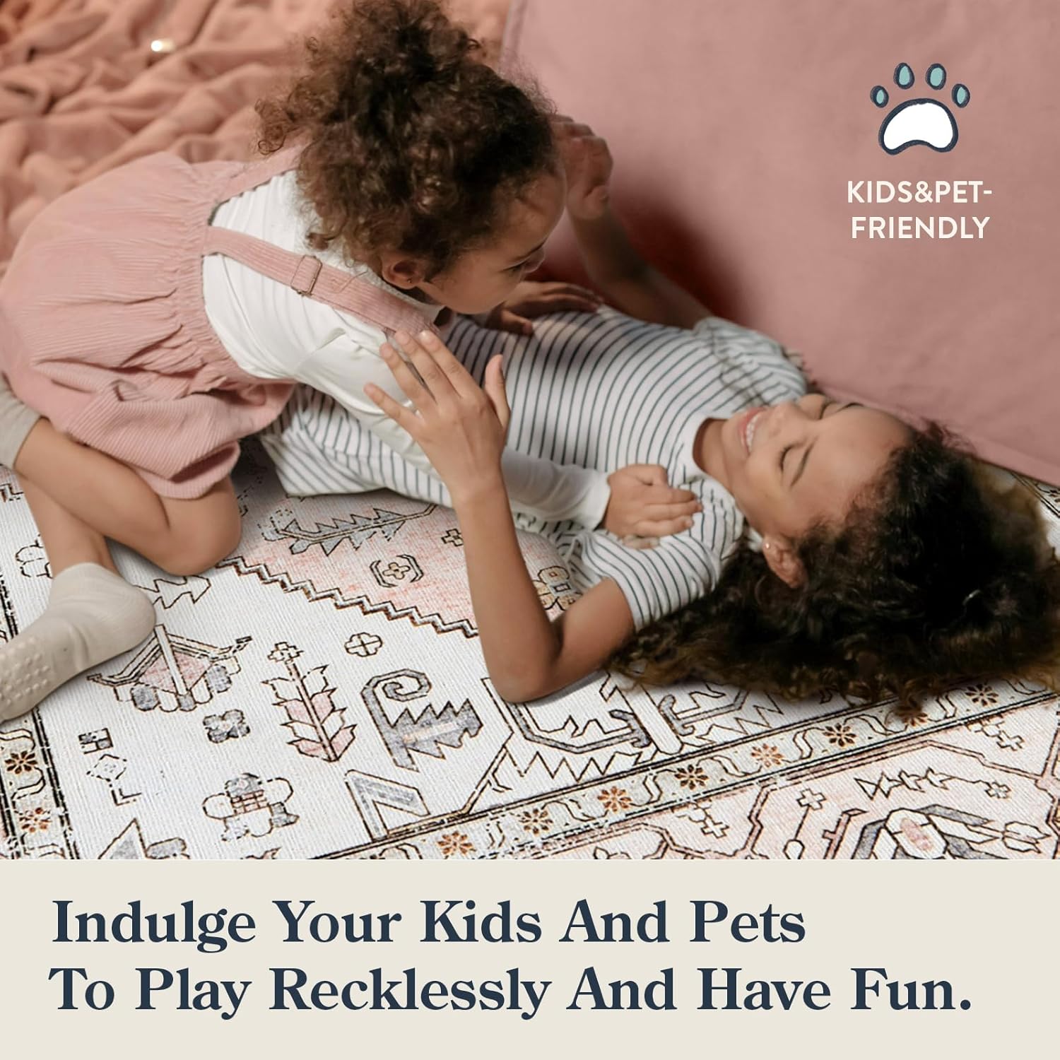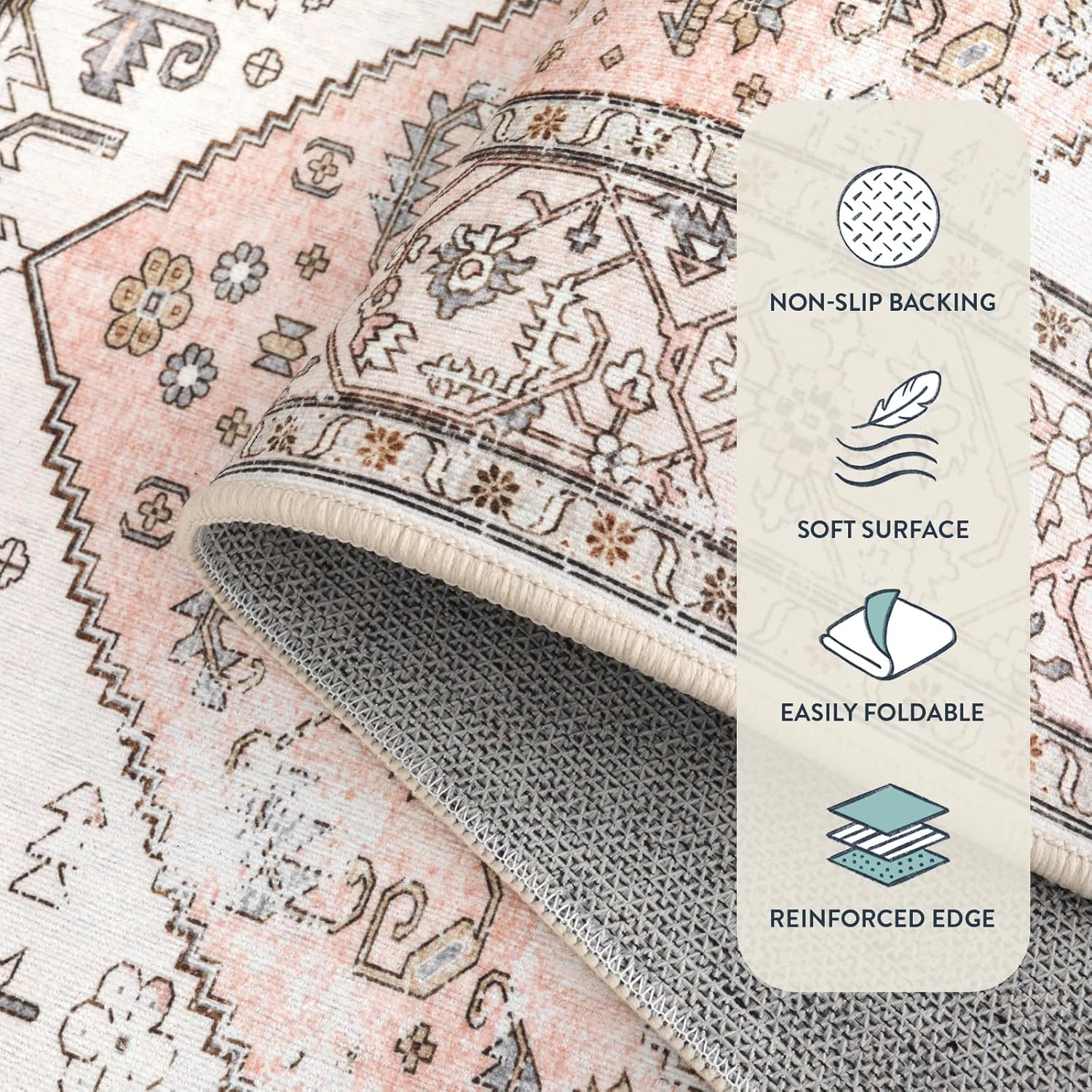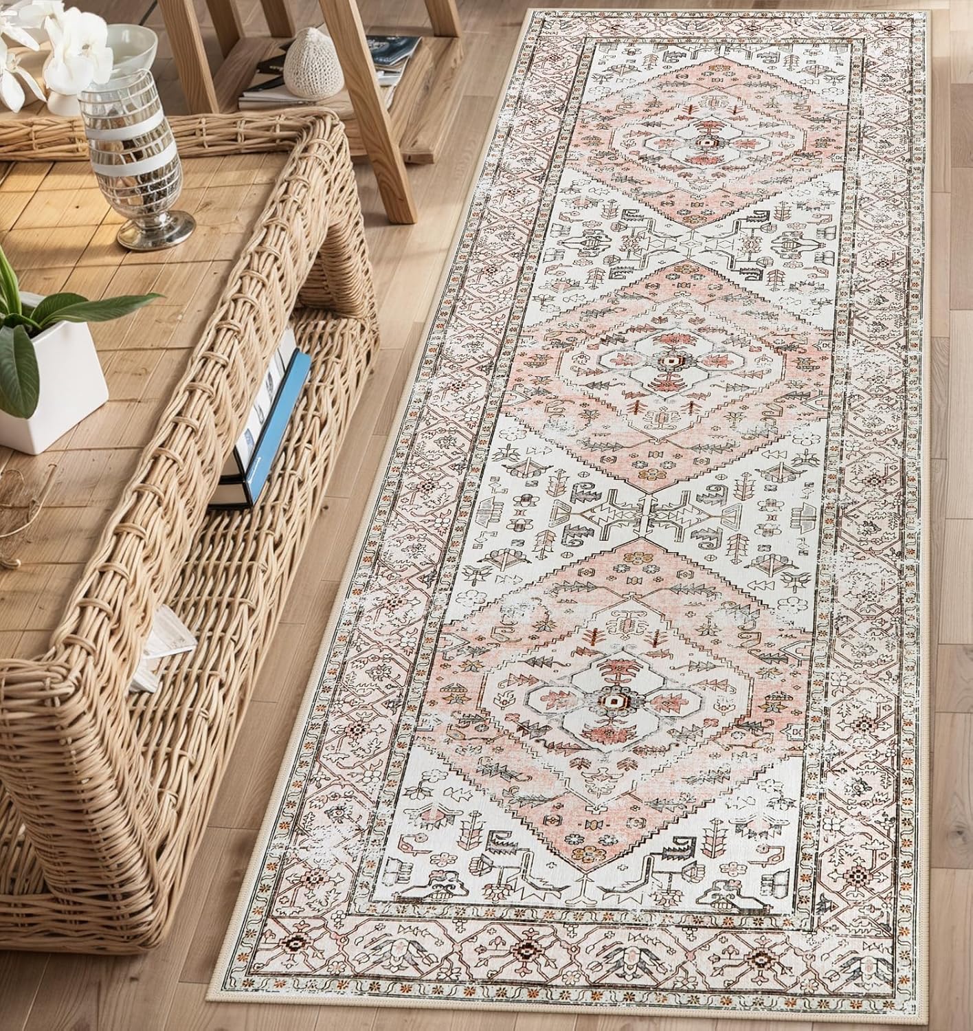 Lahome Boho Washable Non-Slip Pink Rug - Ultra-Thin Non-Shedding Bedroom Bathroom Carpet Runner for Hallway Entryway (Pink, 2'x6')