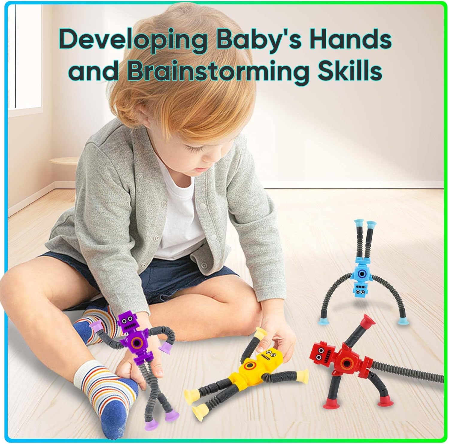 - 【Pop Tubes Robot Toys for Kids 3-5 Age Pack Spark Imagination】: Delight in the whimsical antics of our robots as they extend their arms and legs with a simple squeeze. These unique toys adhere to surfaces using their suction cups, inspiring imaginative play and fine motor skill development.