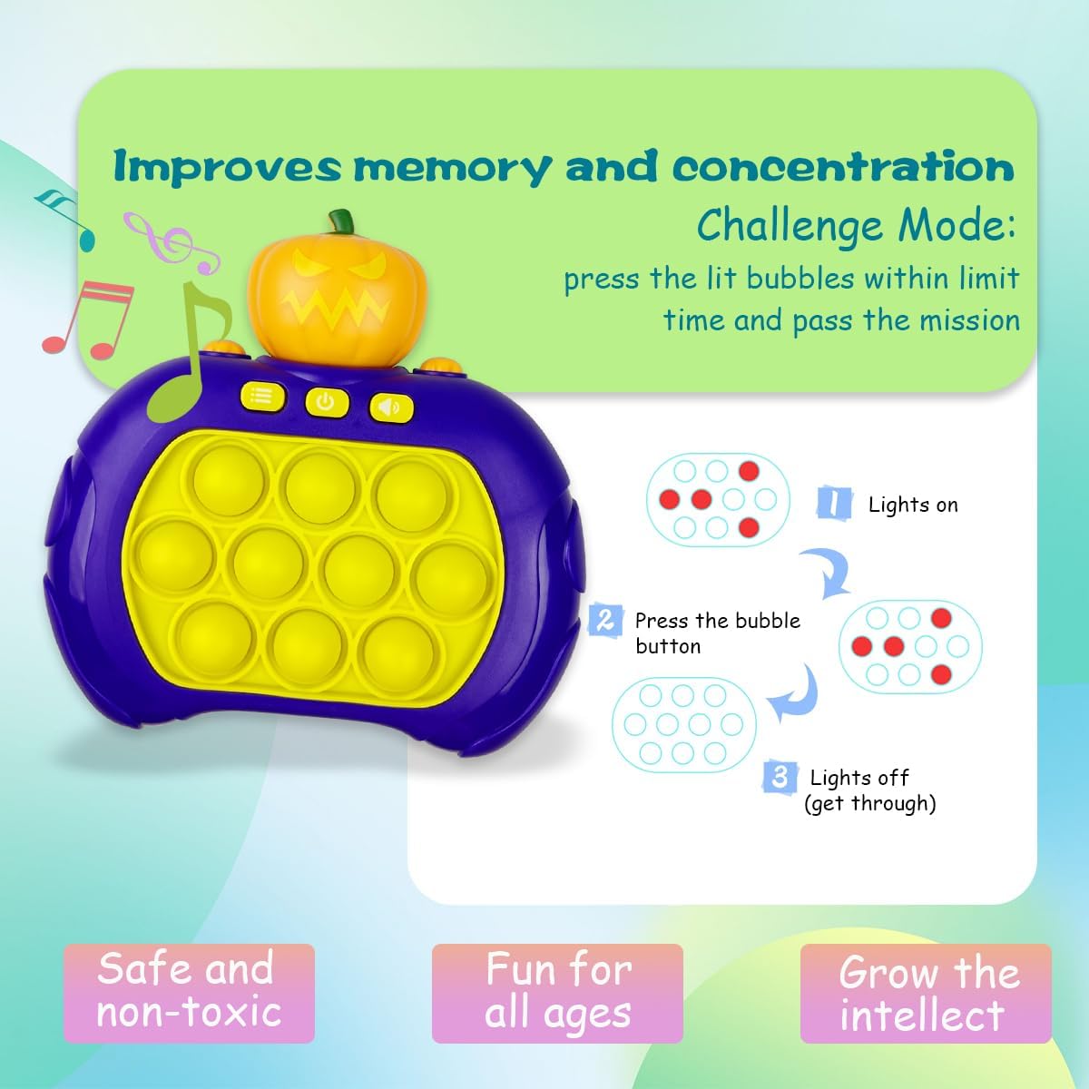 - Fun to Play - It's not only a quick push game toy, but also a fidget pop toy, get it to share with your friends, must be an amazing toy for Halloween