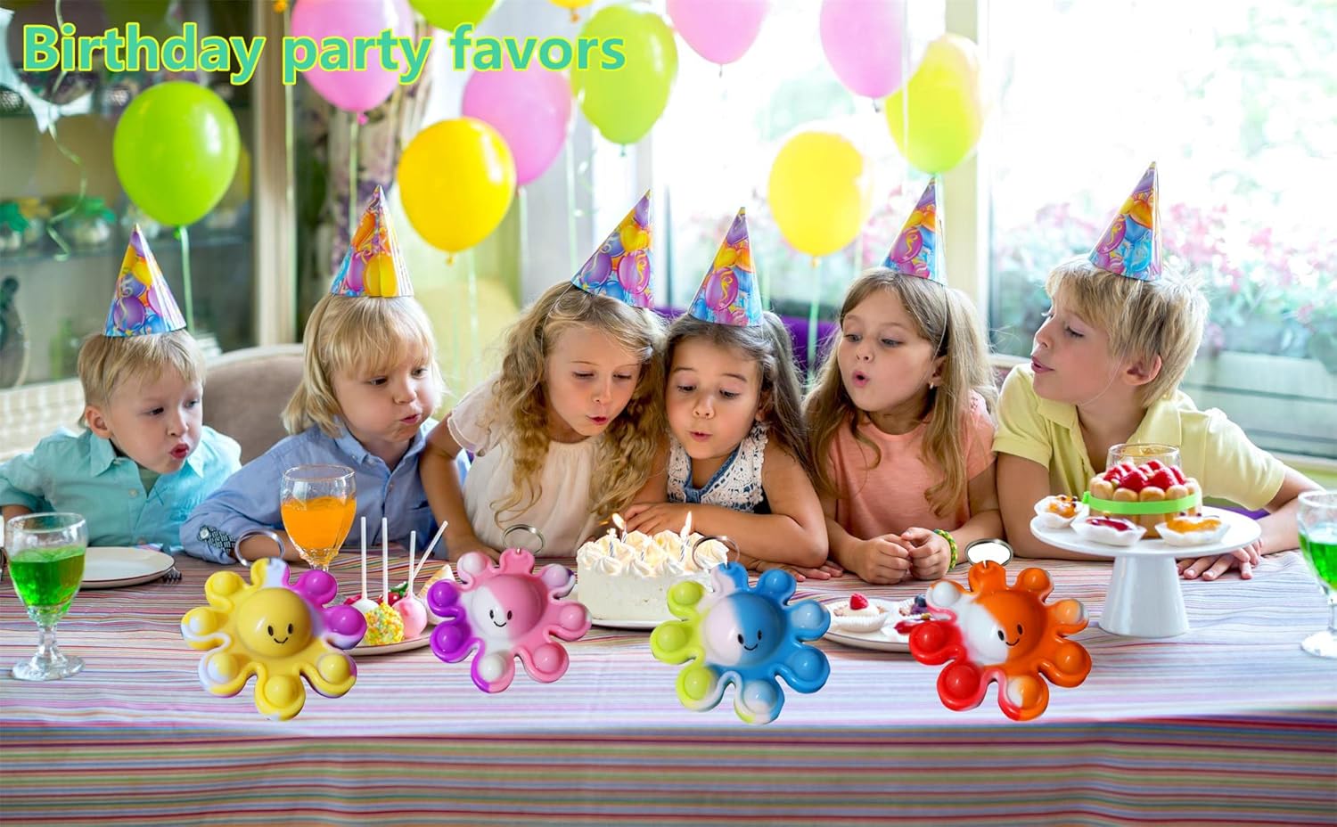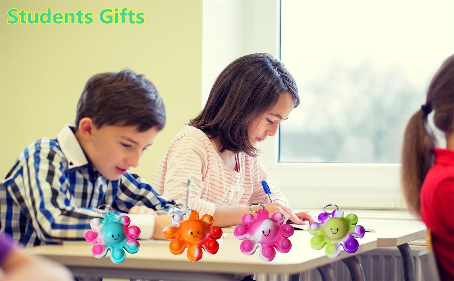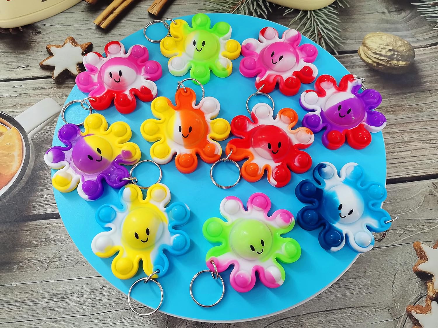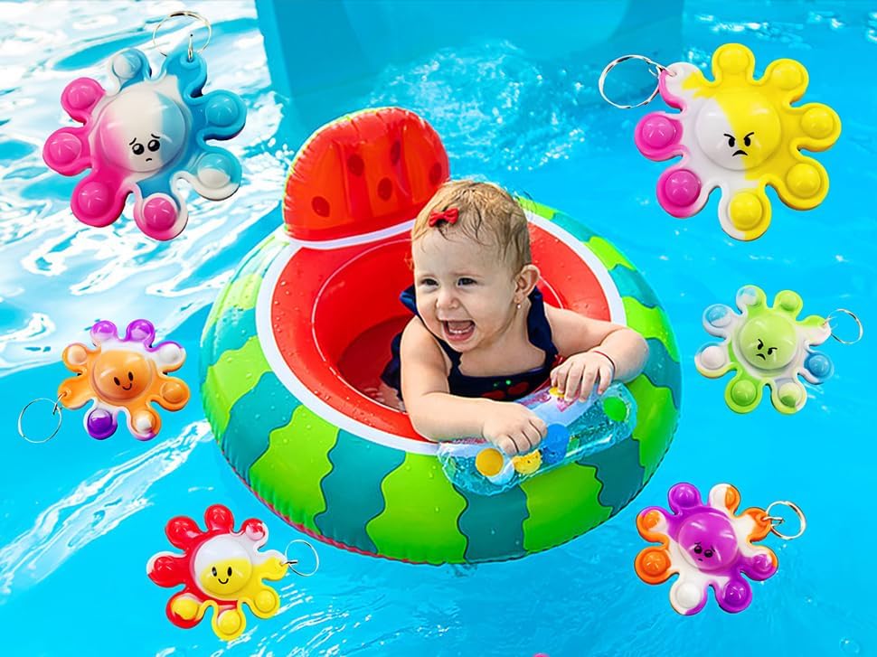 - 2:Package included: 10 packs Bulk octopus Mini pop fidget keychain party favors,Size:3.0*2.0*0.3 inch.Random color to send