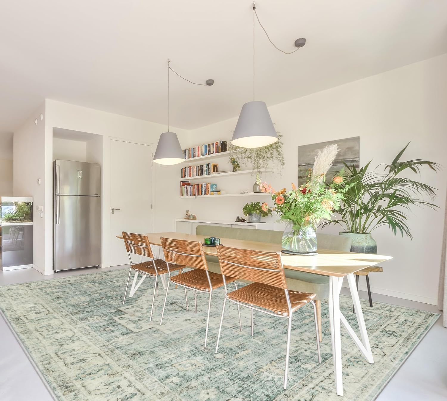 LIVEBOX Washable Area Rug 9x12 Rugs for Living Room Bedroom, Non-Slip Boho Indoor Carpet for Dining Room Office, Low-Pile Farmhouse Soft Carpets for Kids Nursery Playroom, Sage Green