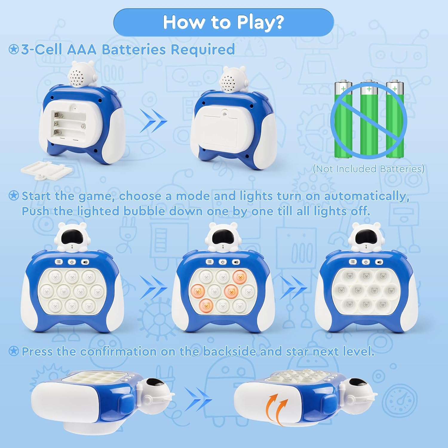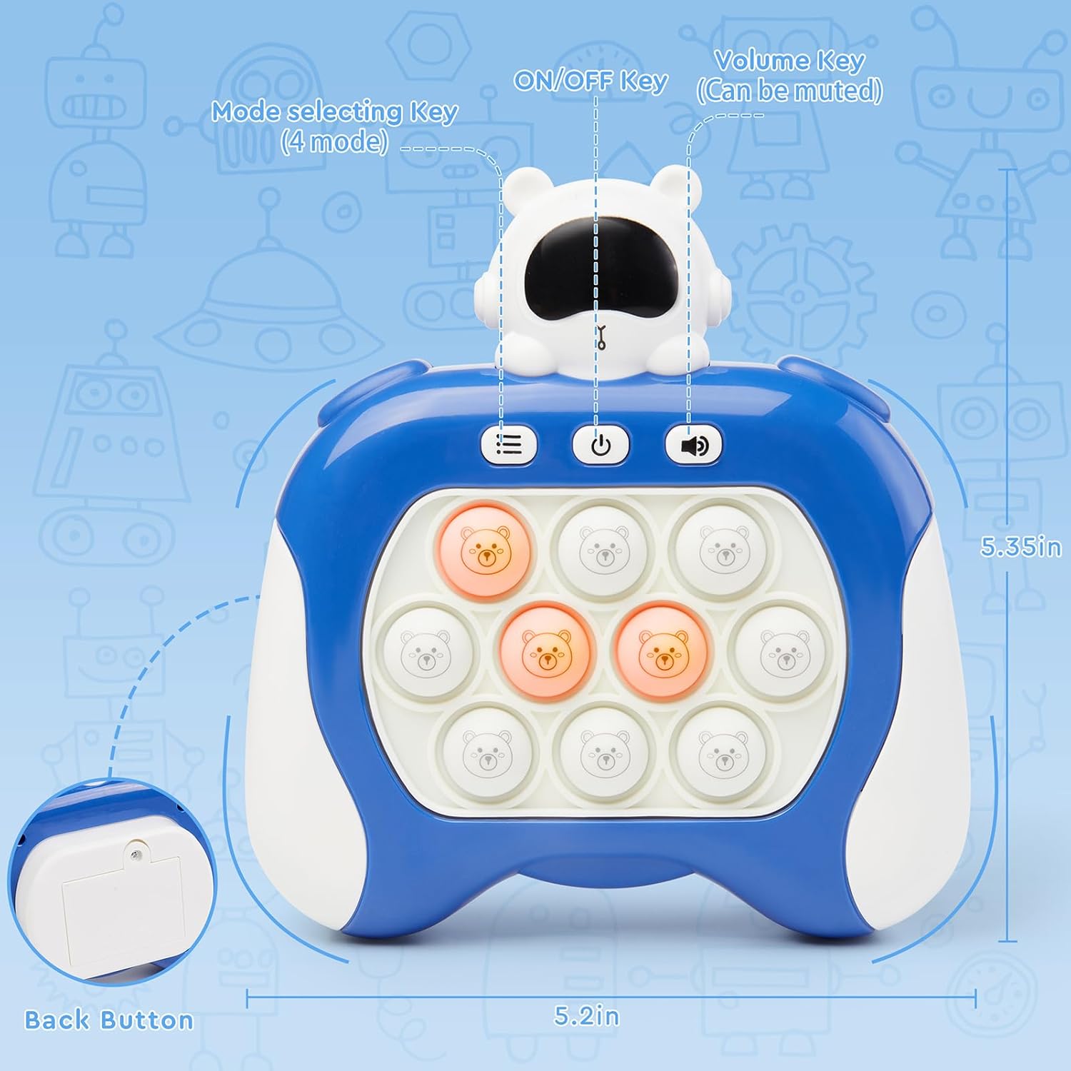 Quick Push Fidget Toy for Kids Adults, Fast Speed Pushing Game Console, Handheld Push Bubble Stress Relief Toy Astronauts