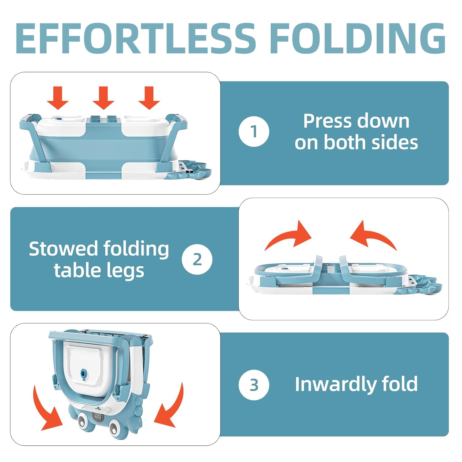 - 【Advanced Double - Folding Design 】 Our collapsible baby bathtub is easy to assemble and can be effortlessly folded in just two steps. The folded thickness can be under 4 inches, very easy to store in all corners to save space in your home.
