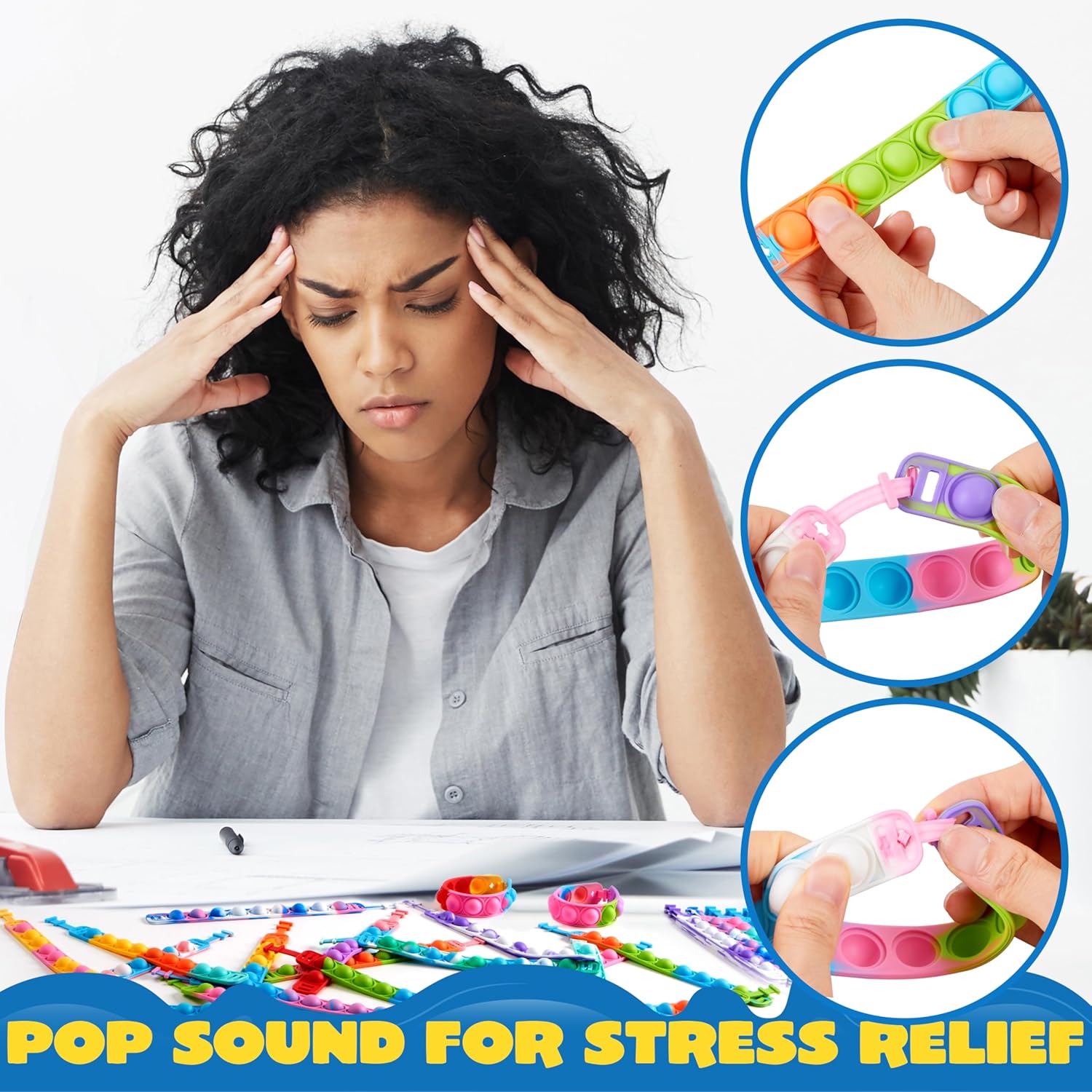 - Fun Fidget Toys for Kids & Adults: This pop its set is not only suitable for kids, but also good for adults to relieve anxiety. They are great fidget bracelets for adults, kids and anxiety, decrease depressions, more concentrate and focus on working