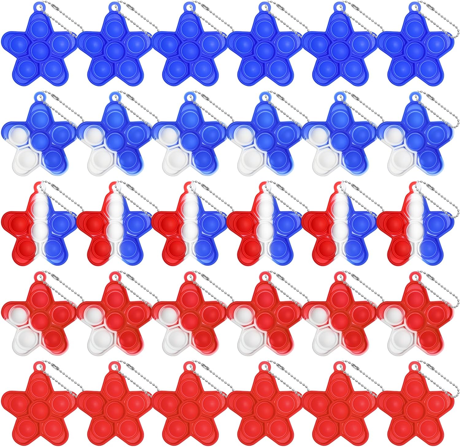 Independence Day Pop dget Toys Fidget Toy Mini Pop Push Fidget Mini Pop Keychain Fidget ToysStress Relief Party Favor Gifts for Kids 30pcs