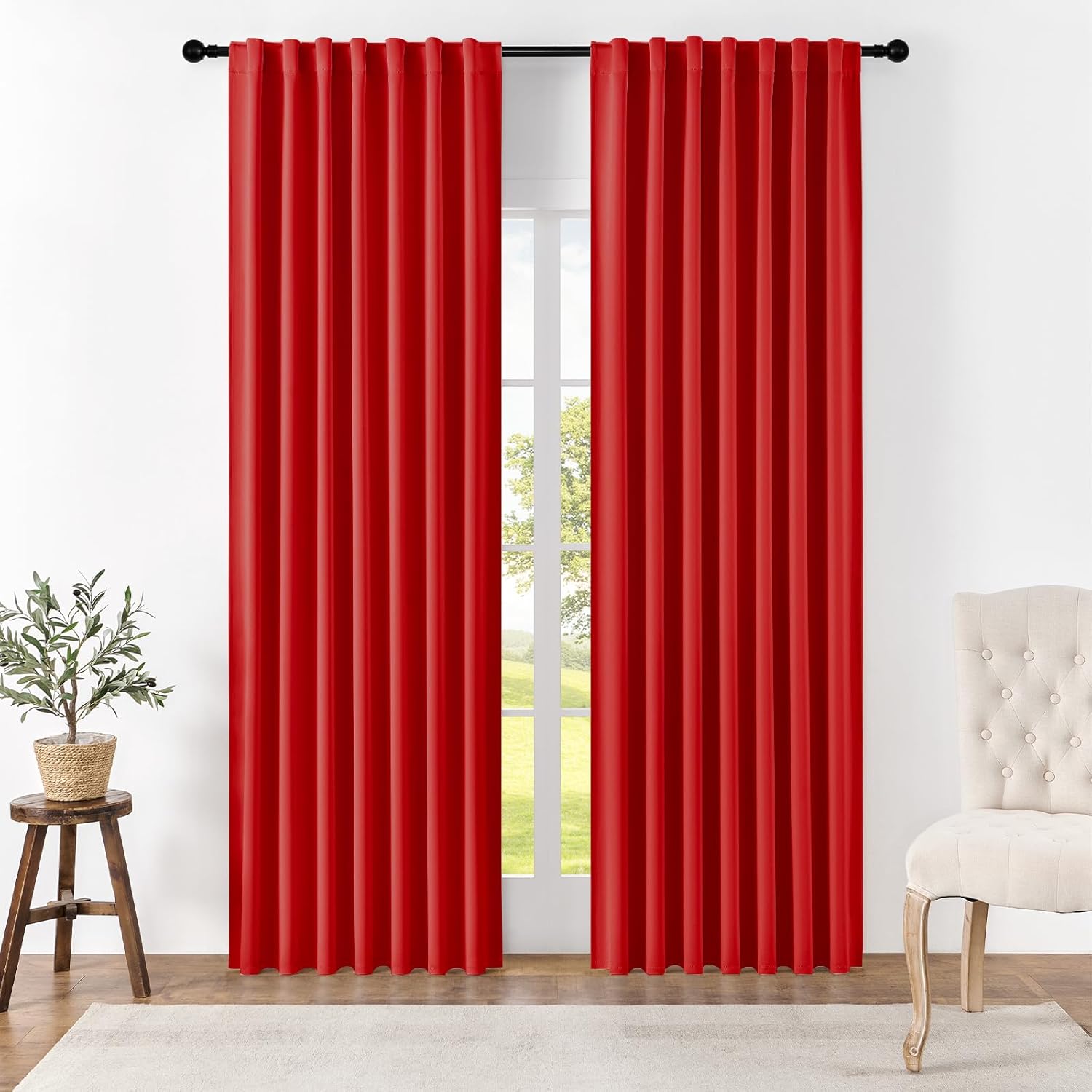 Joydeco Blackout Curtains 108 Inches Long, Thermal Insulated Black Out Curtains 2 Panels Set, Room Darkening Drapes for Living Room Window Rod Pocket Back Tab (W52 x L108 Inch, Red)