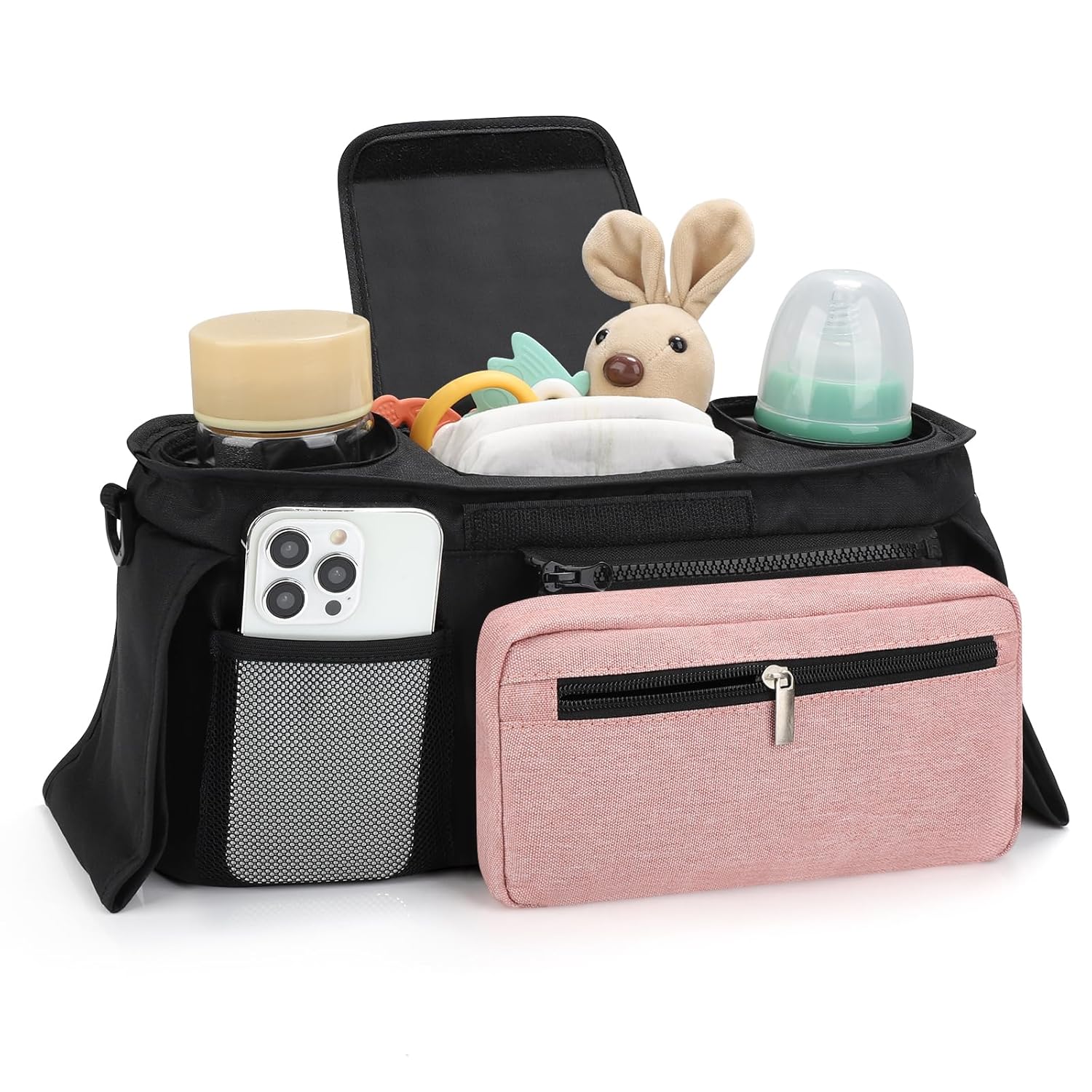 - Multiple Usage Methods : It can be hung as a stroller cup holder organizer on the stroller. When you don't need to use a stroller, you can also install the accompanying strap and carry this organizer bag for easy outing.