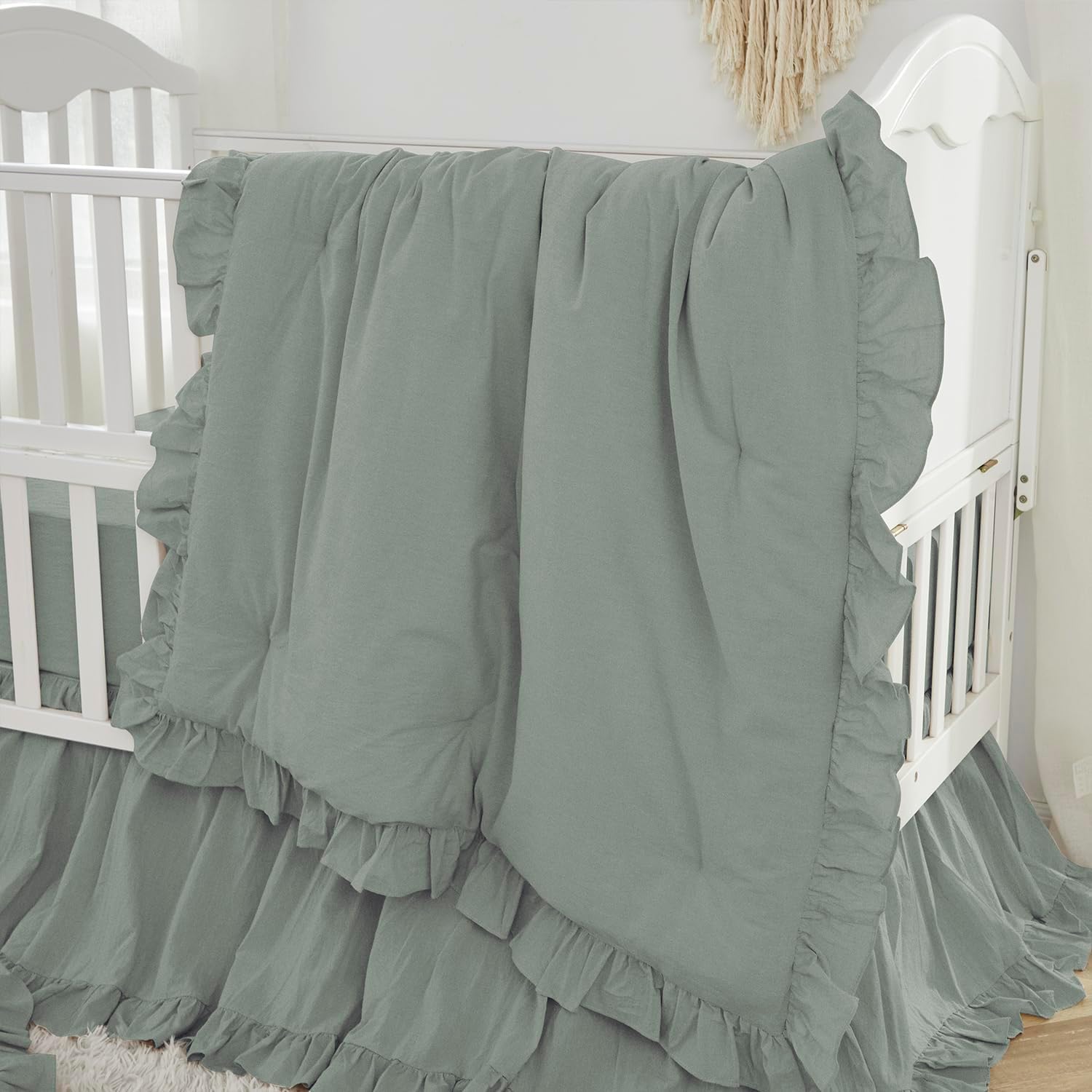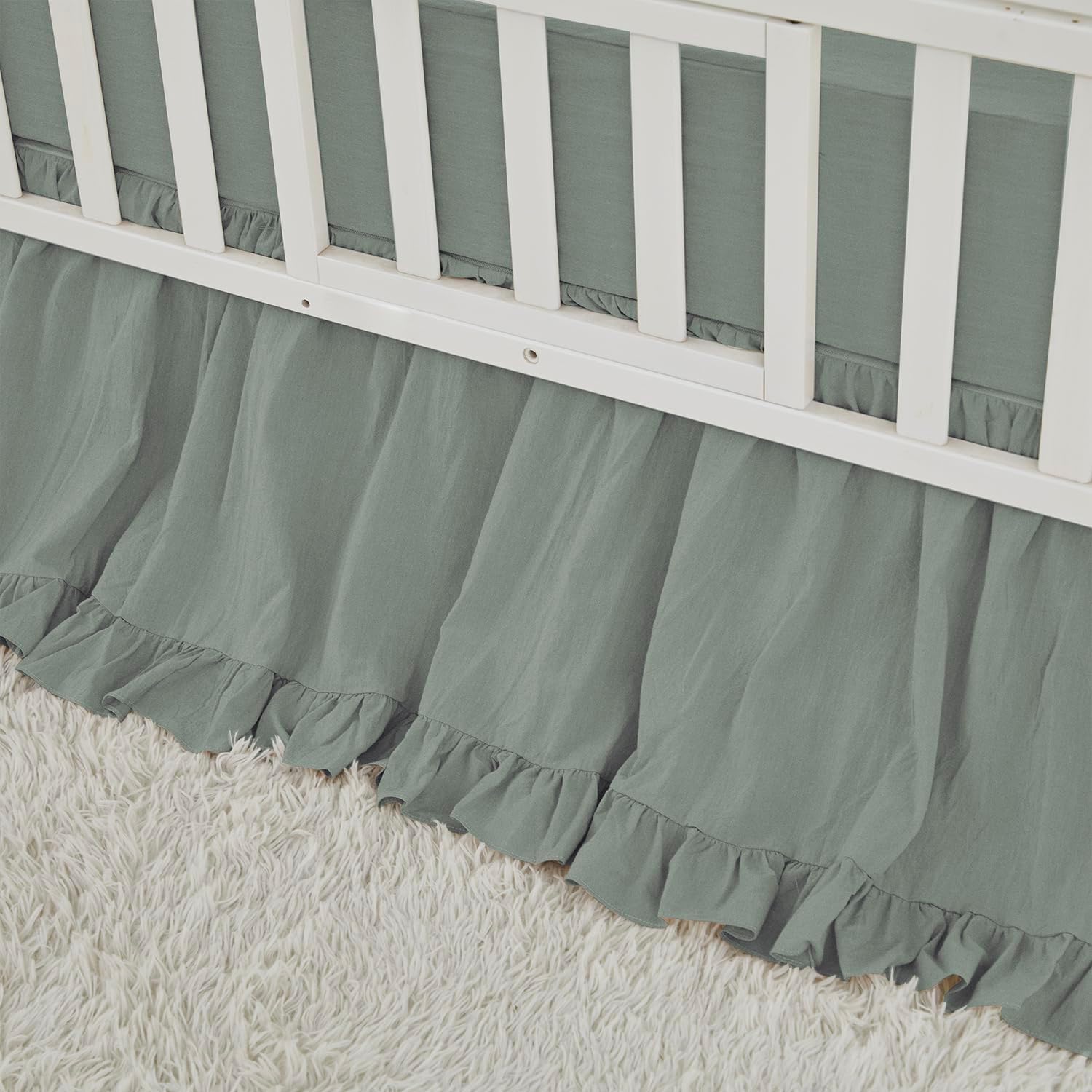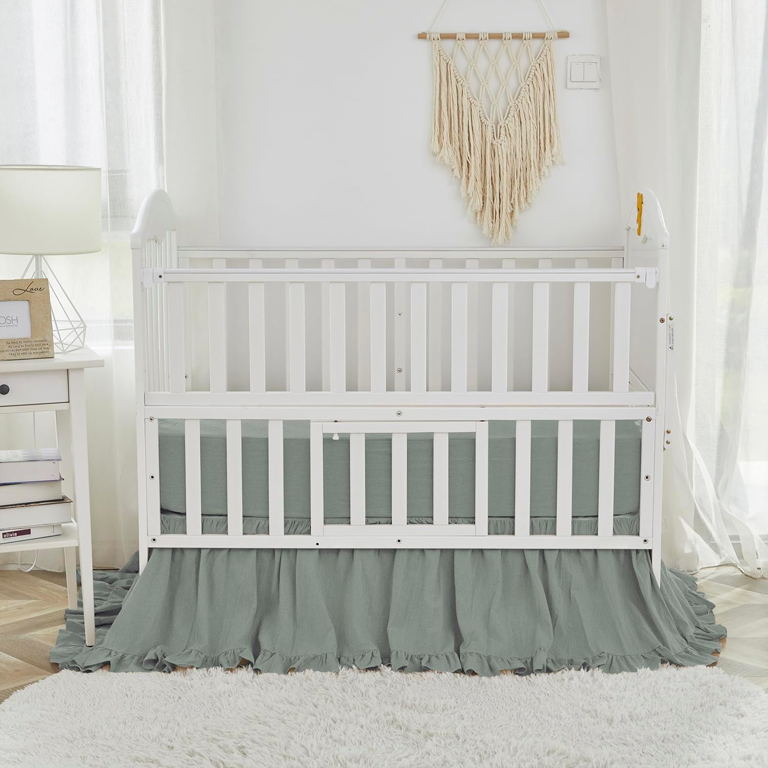 Brandream Gender Neutral Boho Bohemian Baby Girl Boy Nursery 3 Pieces Crib Bedding Set Solid Green Farmhouse Chic Ruffle Unisex Cozy 100% Washed Cotton
