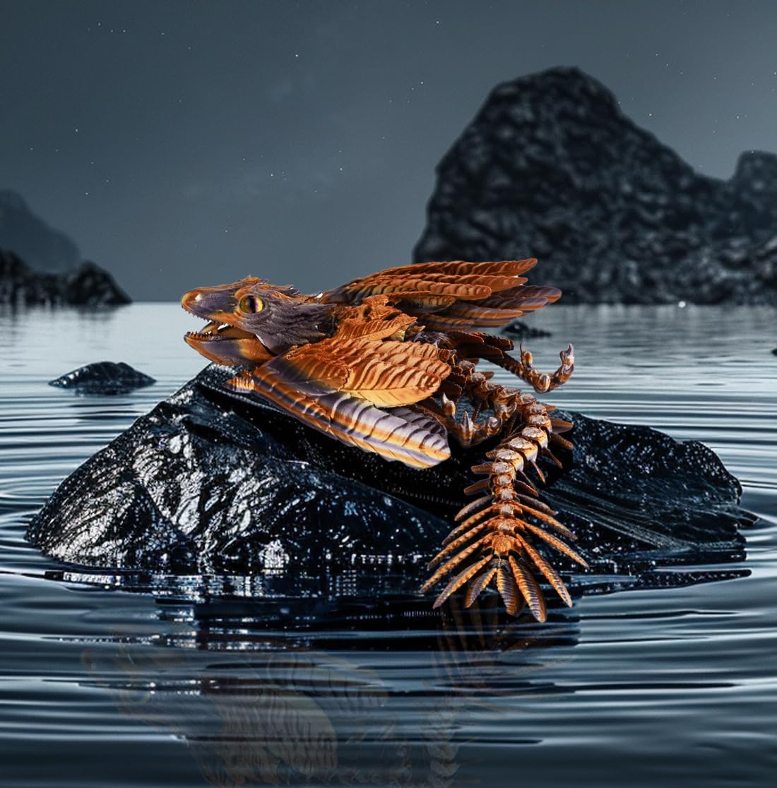 3D Printed Dragon with Wings 3D Printed Animals Articulated Dragon Fidget Dragon 3D Printed Toys Dragon Toy Desk Pets Home Office Decor (Copper)