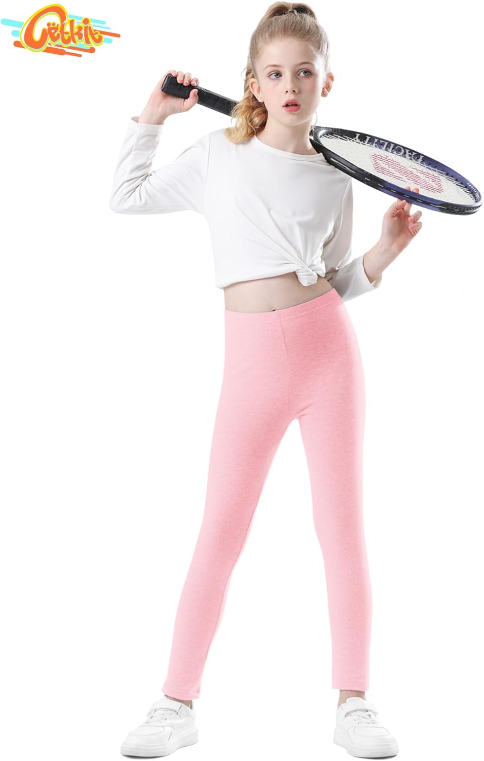 - 【High-Quality Cotton Leggings for Girls】 These girls' leggings are made of 94% polyester and 6% spandex. The fabric is stretchy, ultra-soft, and breathable, making these thin leggings very comfortable and flexible. All leggings are made from premium four-way stretch fabric, with an elastic band sewn into the waistband, which lies flat on the waist for a comfortable and good fit.