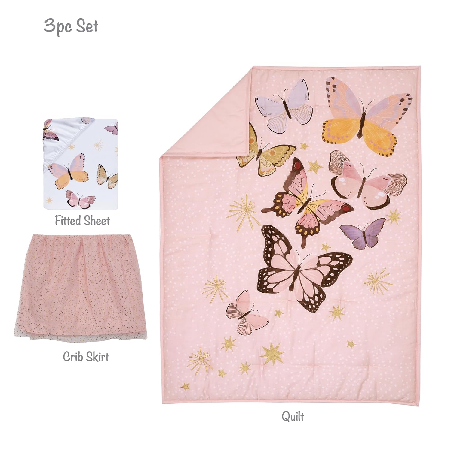 Lambs & Ivy Butterfly Dreams Pink/Gold 3-Piece Nursery Baby Crib Bedding Set