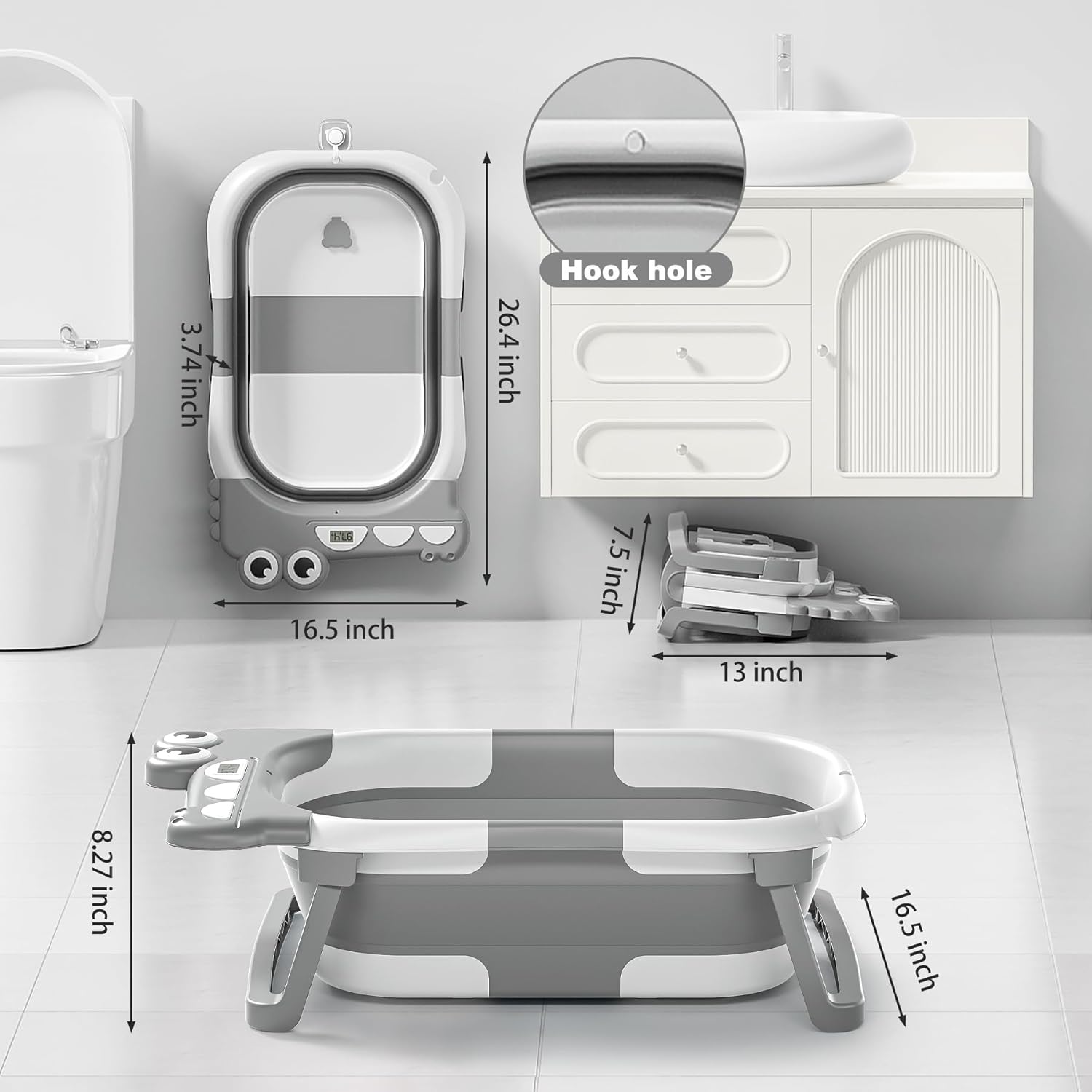 - Adorable and Functional Design: Our baby shower tub features a charming crocodile-shaped design that adds joy to bath time for your little one. Its foldable design ensures convenience and safety