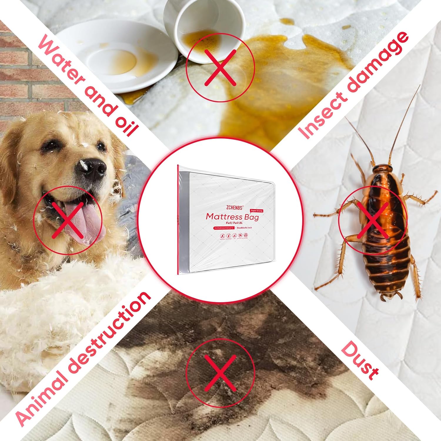 ZCHENBS® – Mattress Bags for Moving and Storage,Mattress Bag with Zippers,5 Mil Ultra-Thick Bed Bag,Waterproof,Anti-Tear,Heavy-Duty Mattress bag (Transaparent/Red, Full/Full XL-(1 Pack))