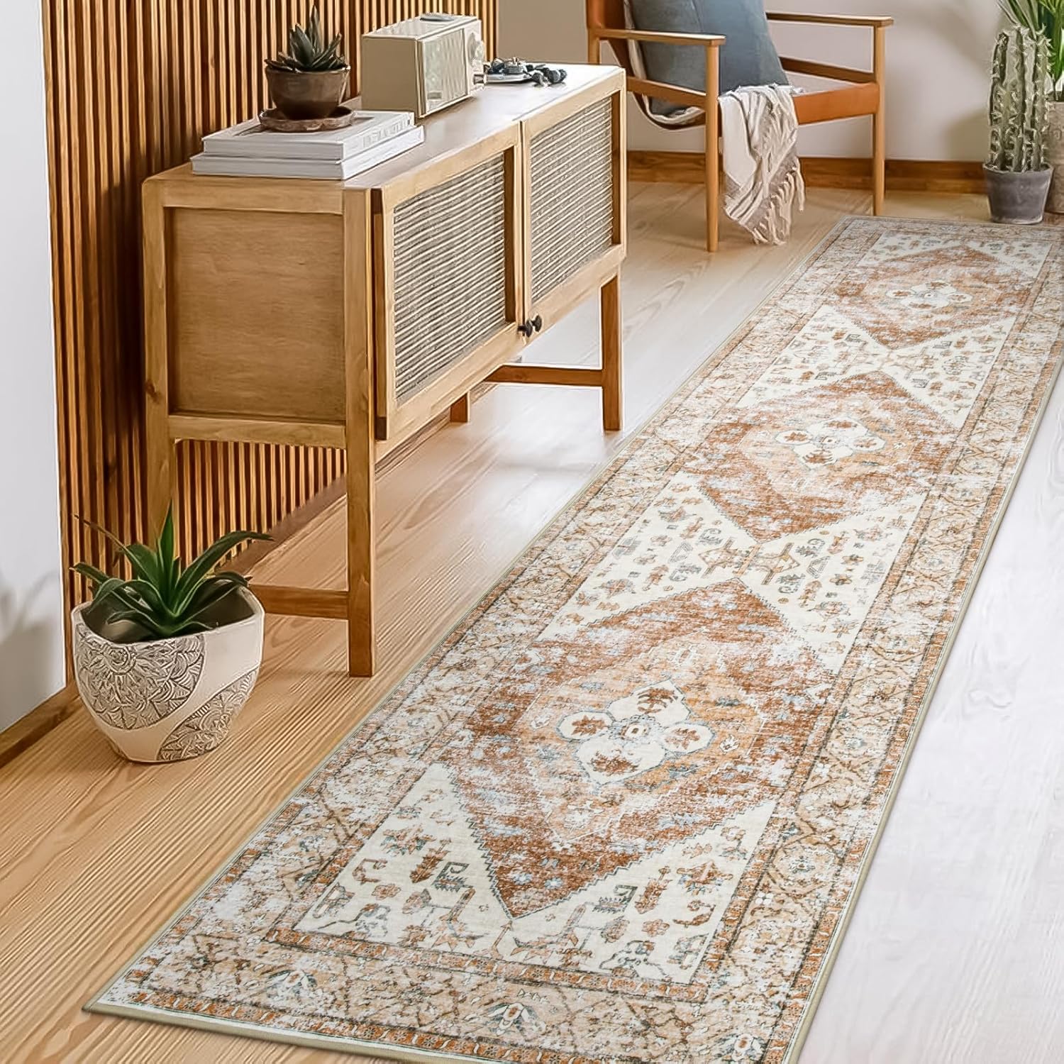 Lahome Boho Carpet Runners for Hallway 2x10 Washable Non-Slip Runner Rug Non-Shedding Lightweitht Long Kitchen Carpet, Oriental Distressed Print Floor Mat for Entrance Laundry Room Foyer