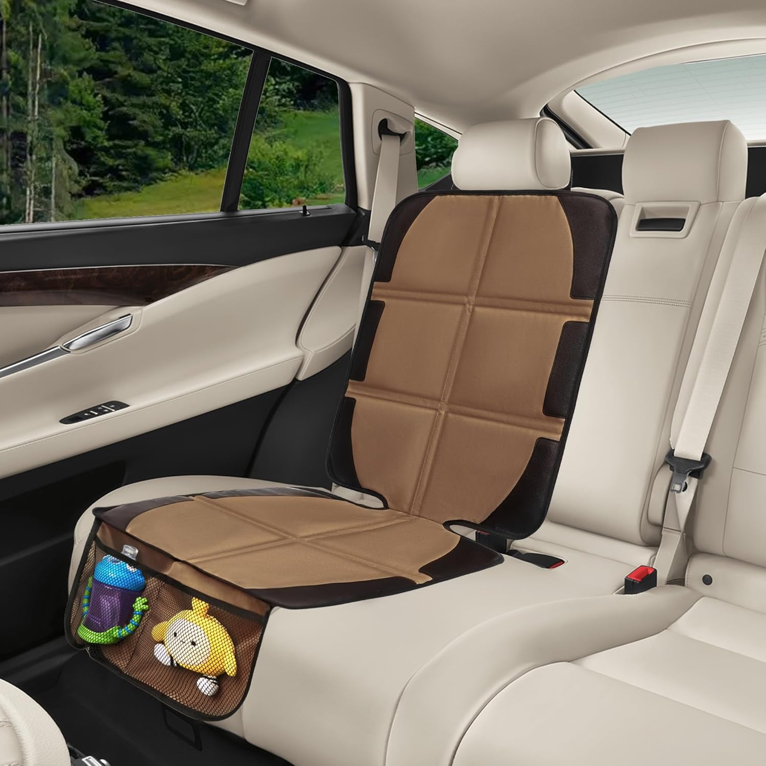 - Car seat protector covers for baby carseat made of waterproof durable 600D polyester with thick padding. Baby car seat cover can protects the back seat of the car from wear and tear of the child seat, make us comfortable while traveling