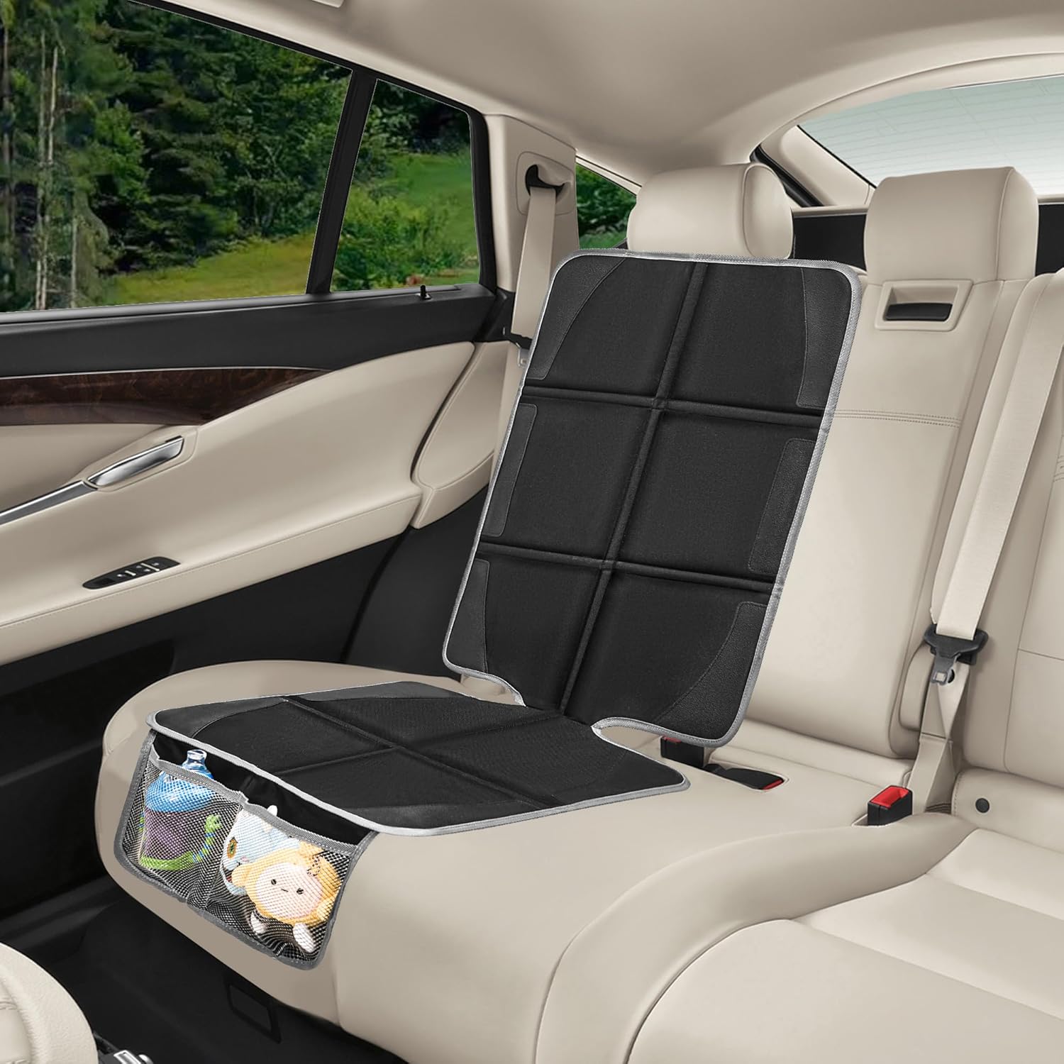- Recommended Uses For Product : Protecting car seats from child car seats, preventing indentations and scratches, and offering storage with mesh pockets. Protecting car seats from child car seats, preventing indentations and scratches, and offering storage with mesh pockets.