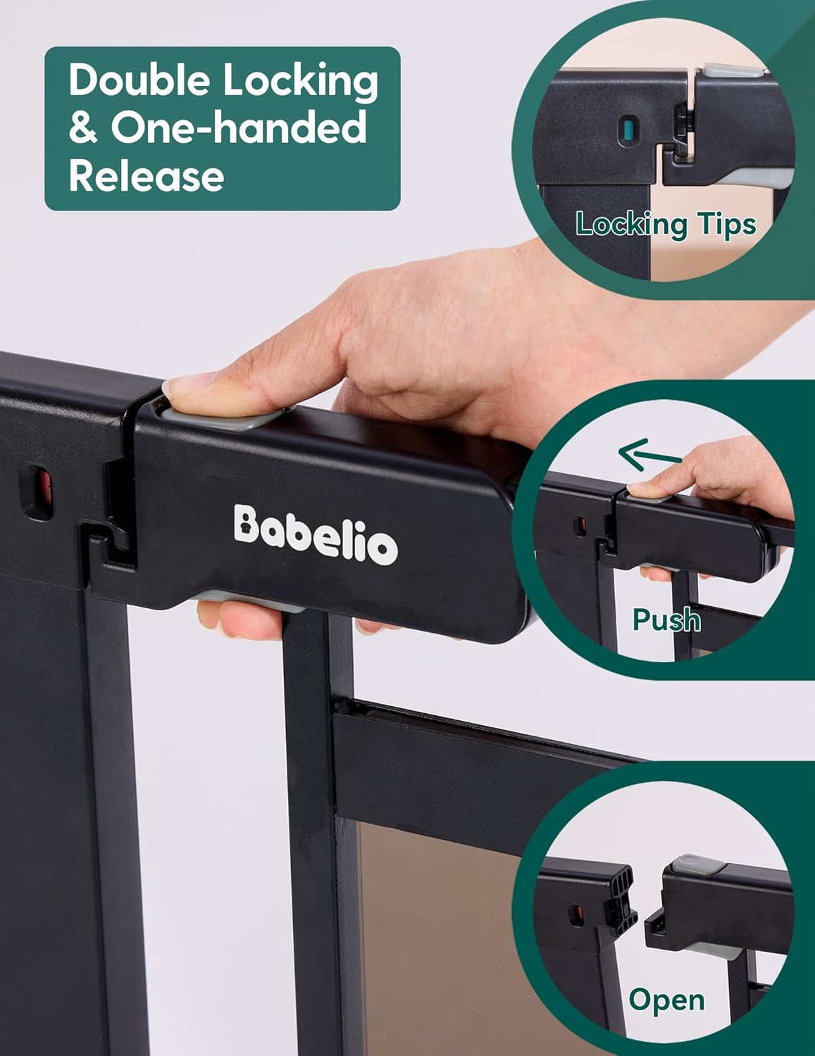 - Lock Verification: Babelio Clear Baby Gate uses a more advanced locking mechanism. When closed correctly, it will display green, but when it is open it will display red, which can better help you confirm whether the gate lock is closed properly
