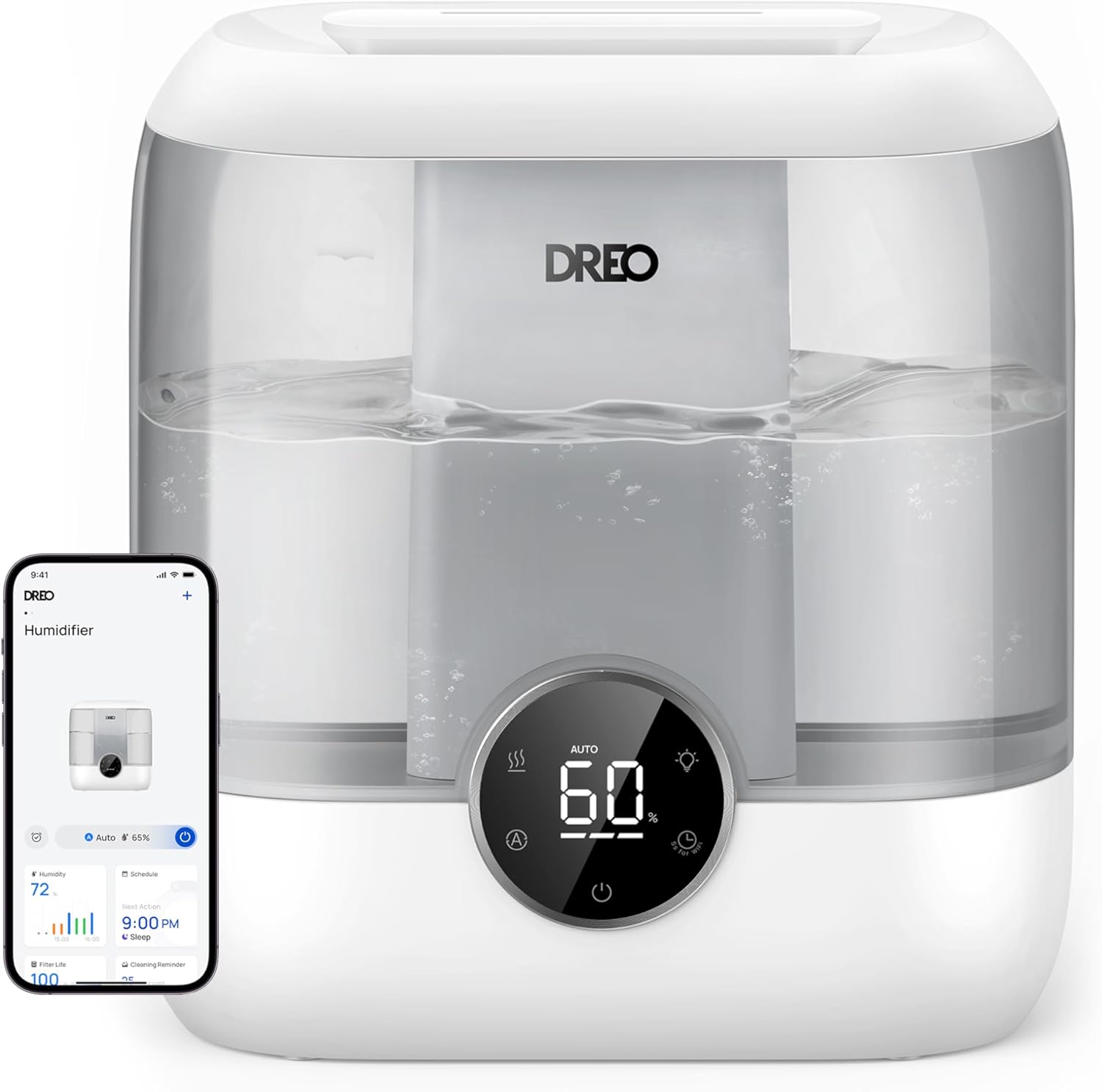 Dreo Smart Humidifiers for Bedroom, 6L Top Fill Supersized Cool Mist Humidifier for Large Room, 60 Hour Runtime, Quiet Ultrasonic Humidifiers for Plants, Baby, Nursery, Indoor, Home, Night Light, Gray