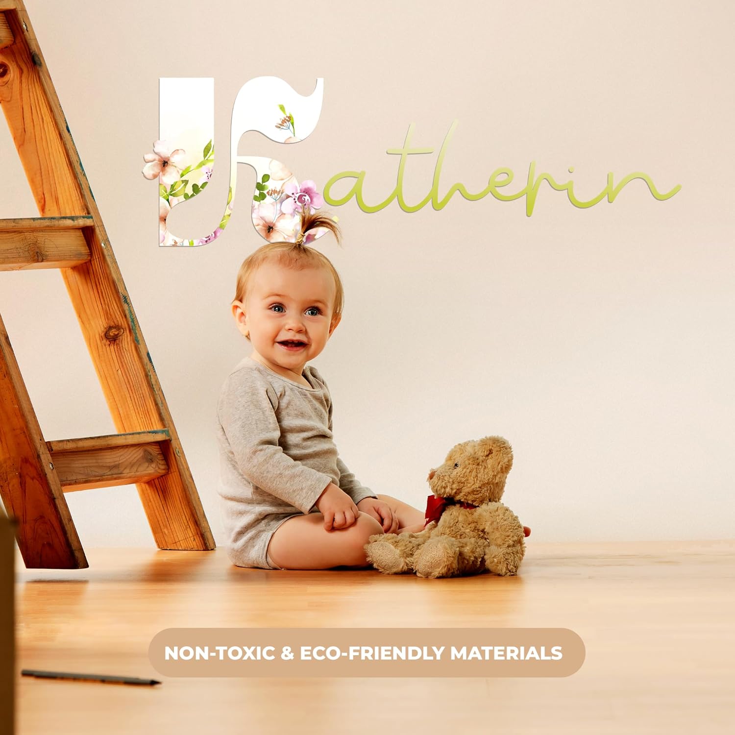 - 📏 MULTIPLE SIZE CHOICES: Tailor the name decal to your space effortlessly with multiple size options. Whether you want small flower stickers decoration or a big flower decor piece for your wall, our range of sizes ensures the perfect fit for any wall in your girls room. We believe in offering flexibility. Explore our vinyl letter stickers collection with various size options: Wide 8", Wide 12", Wide 16", Wide 22", Wide 30", and Wide 40".