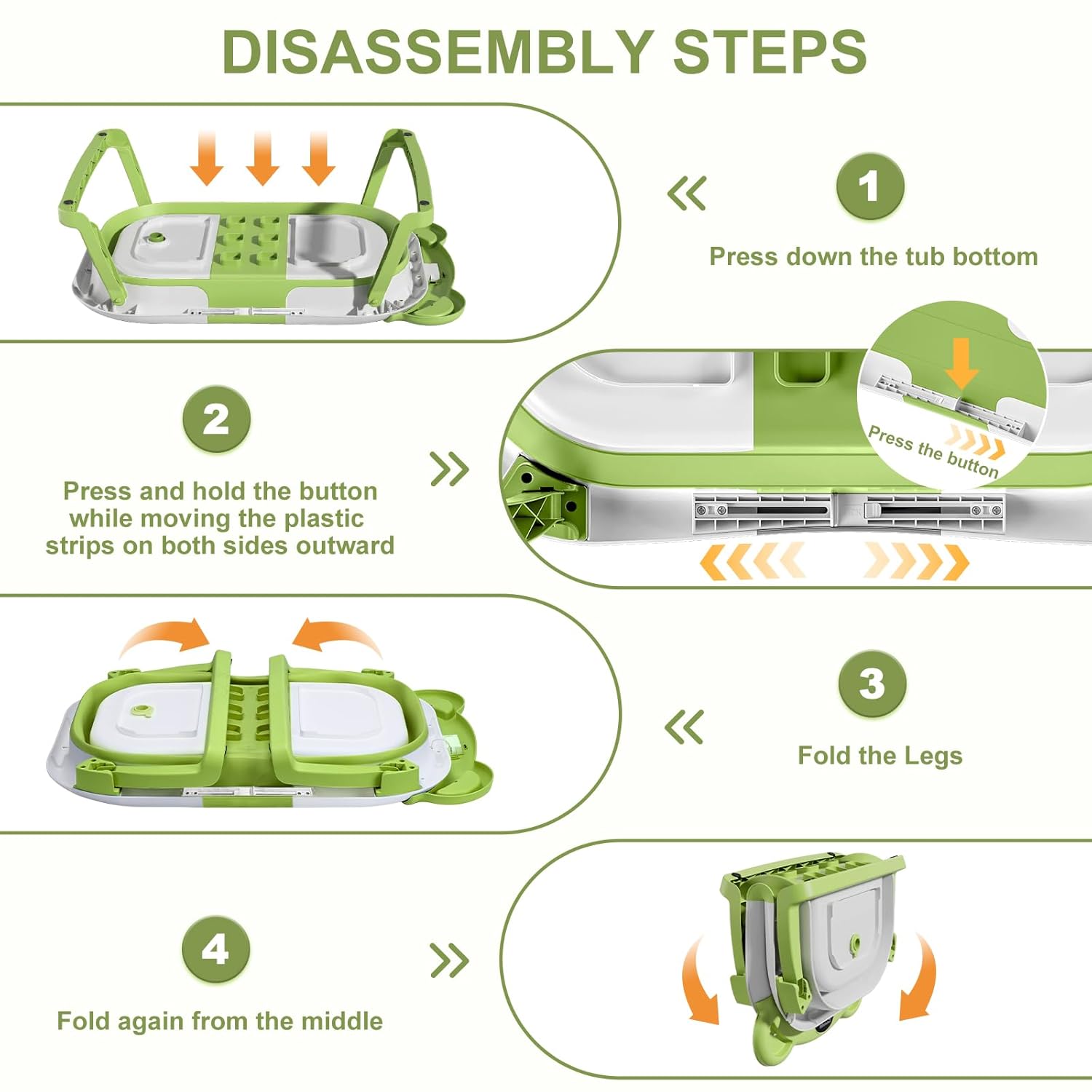 - Double-Fold Collapsible Design: TPN collapsible baby bathtub features an ingenious double-fold design, compactly measuring less than 4 inches in thickness. This facilitates effortless storage in any corner and enhances portability for on-the-go convenience, making it a perfect companion both at home and during travel. The off-the-floor drain with a user-friendly rubber plug guarantees seamless draining without the need for relocation.