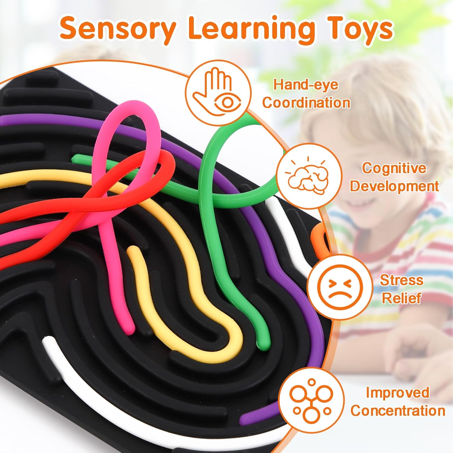 2psc Fidget Toys Sensory Activity Board with 20 Strings, Silicone Sensory Toys for ADHD Autism Stress Relief, Educational Learning Toys for Kids 3+ Years Old, Black & Orange