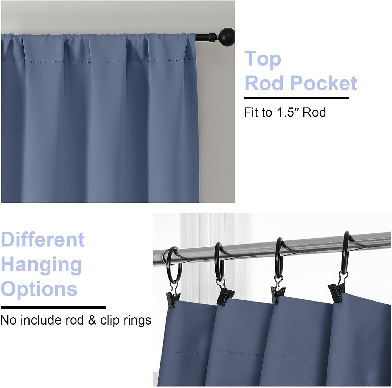 - Pair Sold: Each package includes 2 panels of short blackout curtains. Each panel measures 40"W x 54"L, with a pair measuring 80"W x 54"L. The curtains blackout have 2 hanging options (Rod pocket & Clip Style) with a 3-inch rod pocket to fit standard or decorative curtain rods. Don't worry if this blackout curtain is a few inches shorter than your window. Hang with rings & hooks for easy 3-4" height adjustment.