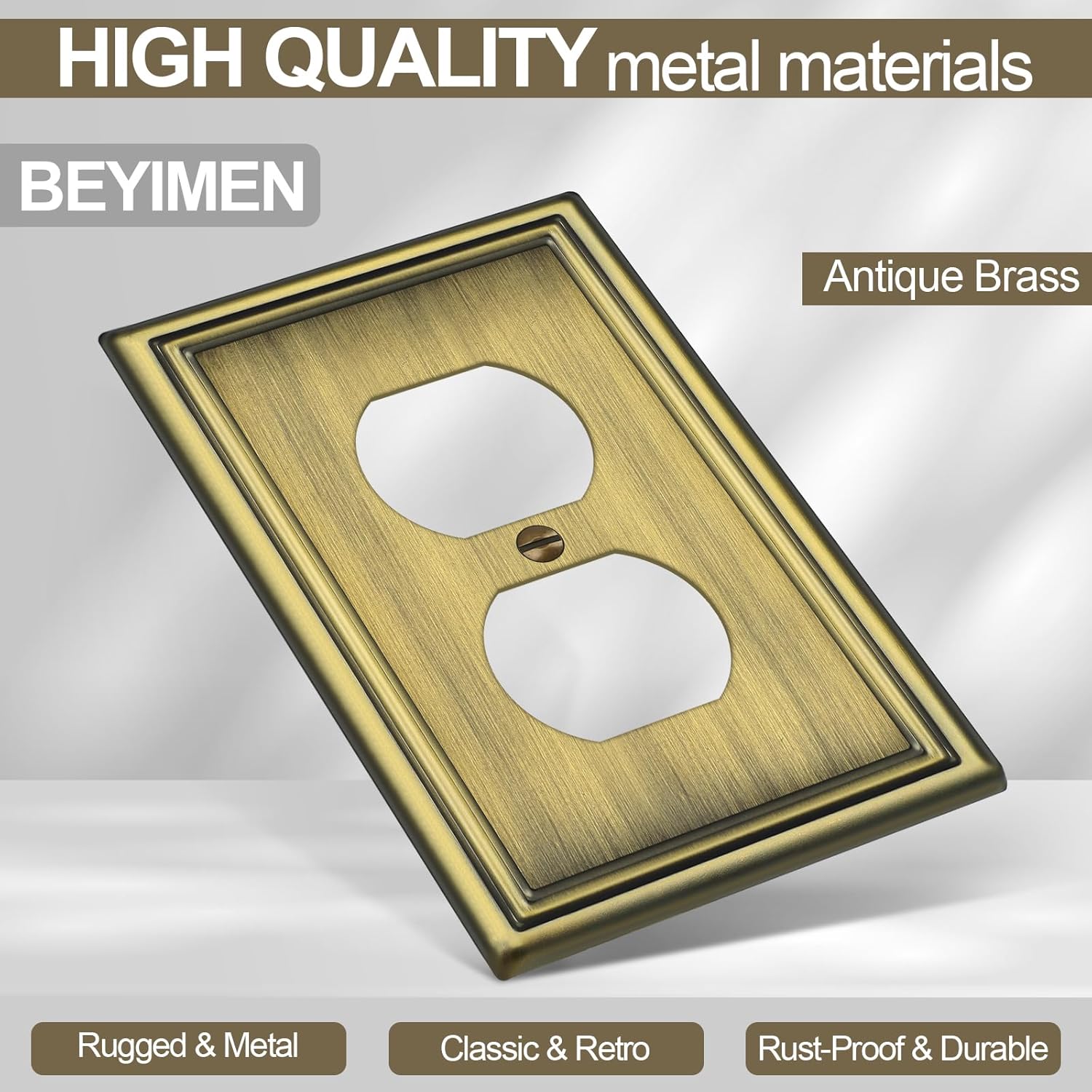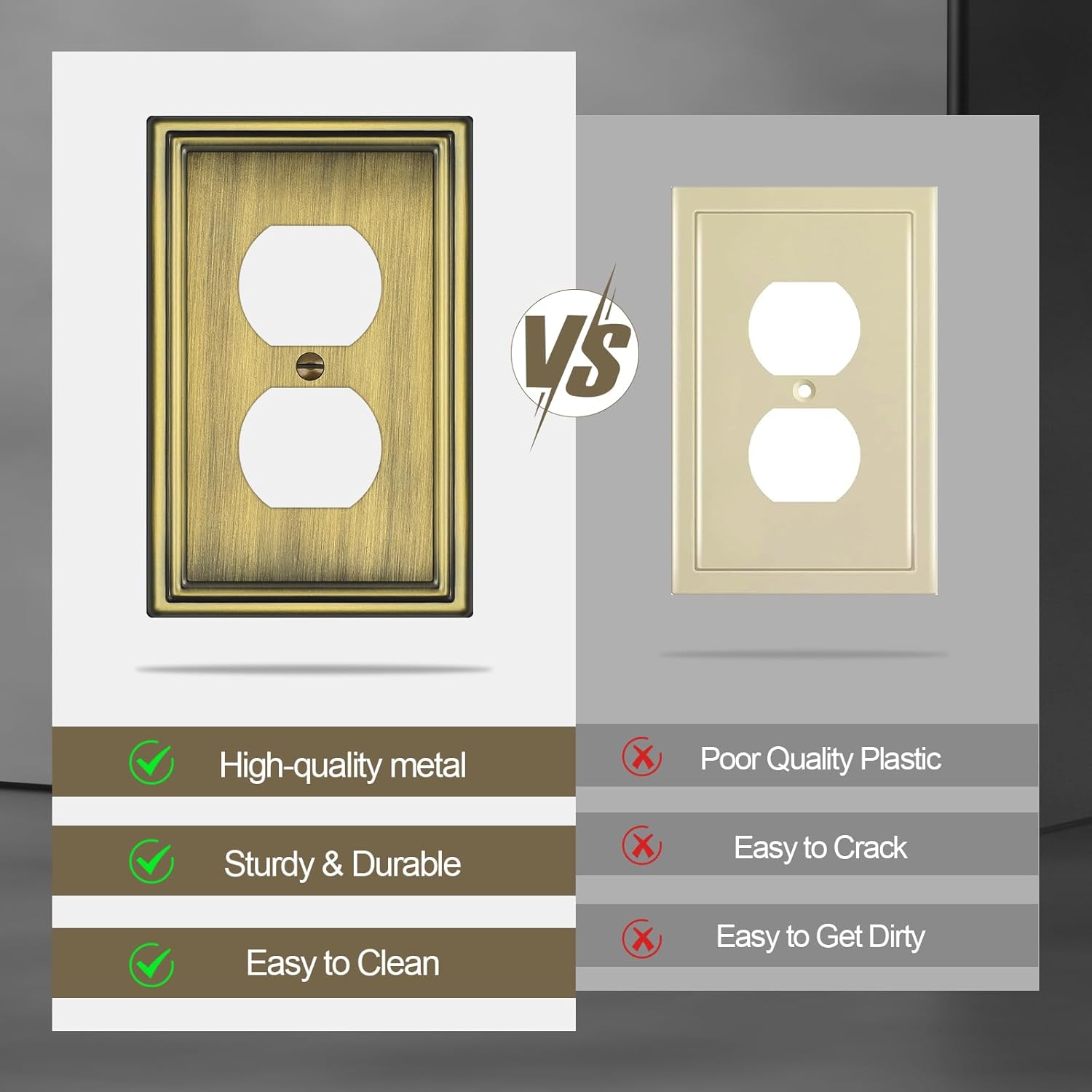 6 Pack Duplex Outlet Covers Wall Plates, Antique Brass Metal Electric Receptacle Cover, Classic Decorative Switch Plate and Outlet Cover, 1 Gang Wall Plate for Electrical Outlets